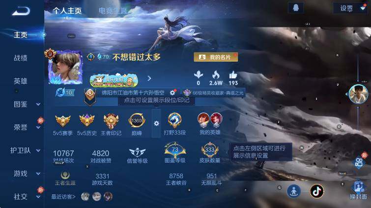 贵族等级9/荣耀典藏数量3/传说皮肤数量20/史诗皮肤数量87/皮肤数量333/英雄数量127/段位最强王者/橘右京全皮/全息碎影 孙悟空/九霄神辉 花木兰/弑枪猎影 韩信/孙悟空无相/祥瑞亨通 裴擒虎/鸣野蒿 桑启/逐花归海 澜/妄想奇谈 上官婉儿/齐天大圣 孙悟空/山海·炽霜斩 李信/怒海麟威 吕布/枫霜尽 橘右京/时雨天司 诸葛亮/炽阳神光 镜/启明星使 虞姬/零号·赤焰 孙悟空/时之恋