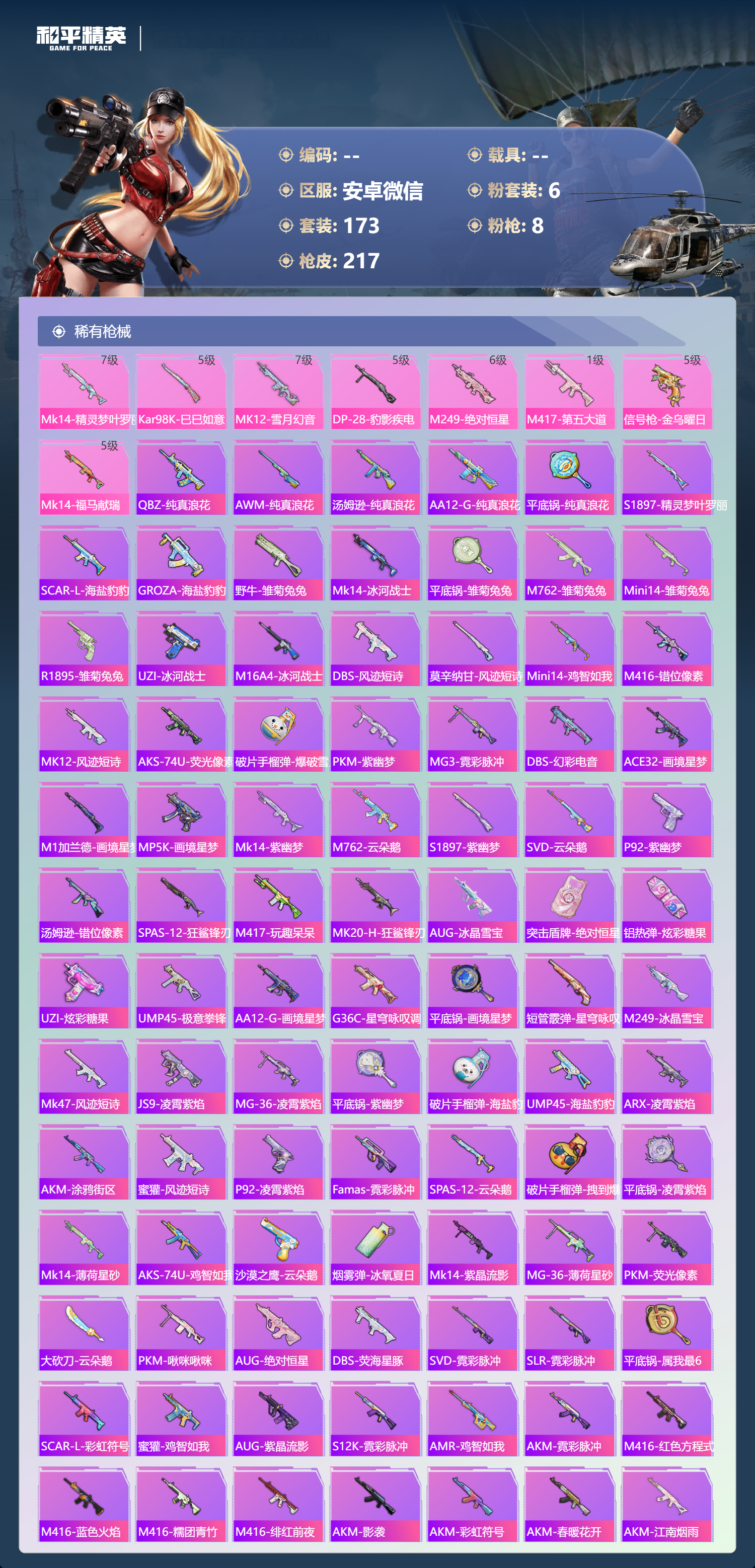 安卓微信-12王牌印记-6粉装-8特效枪-62736热力值-17