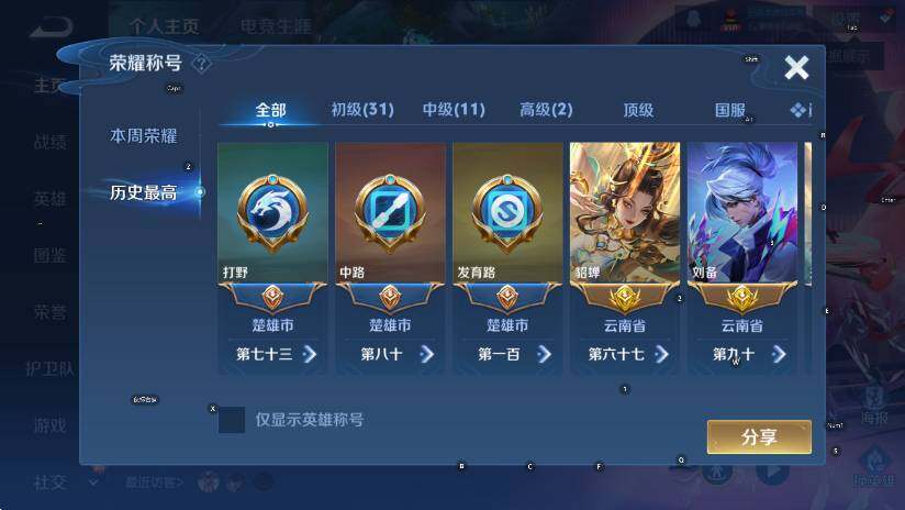 贵族10/皮肤429/典藏7/传说52/史诗123/英雄128/孙权全皮/猪八戒