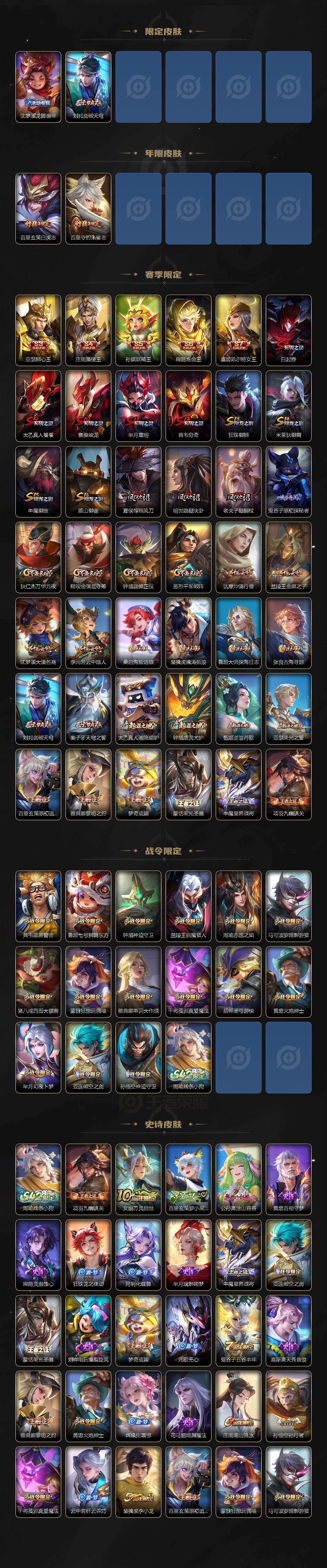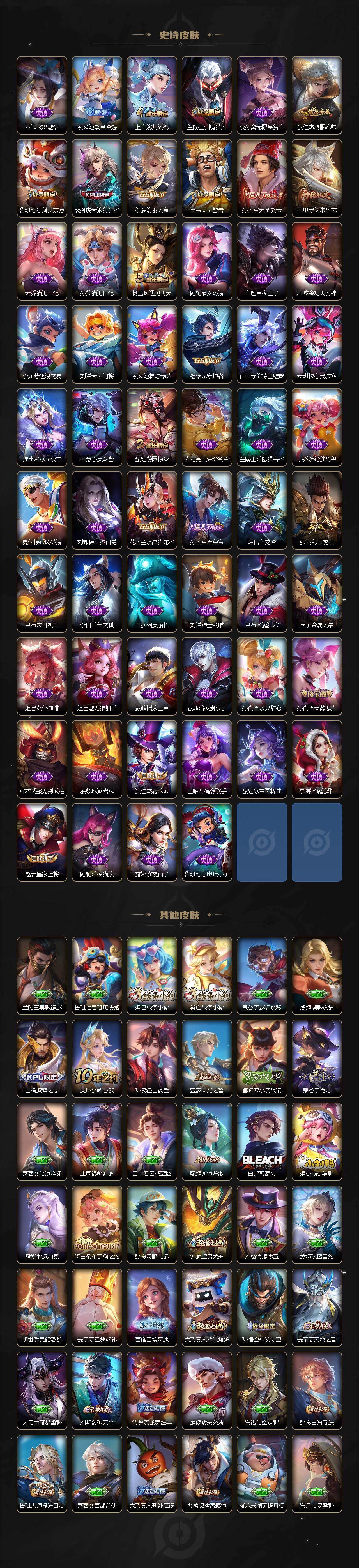 V8-324皮肤-1典藏皮肤-12传说-87史诗【英雄全皮】:孙权全皮,敖隐全皮【荣耀典藏】:李白鸣剑曳影
