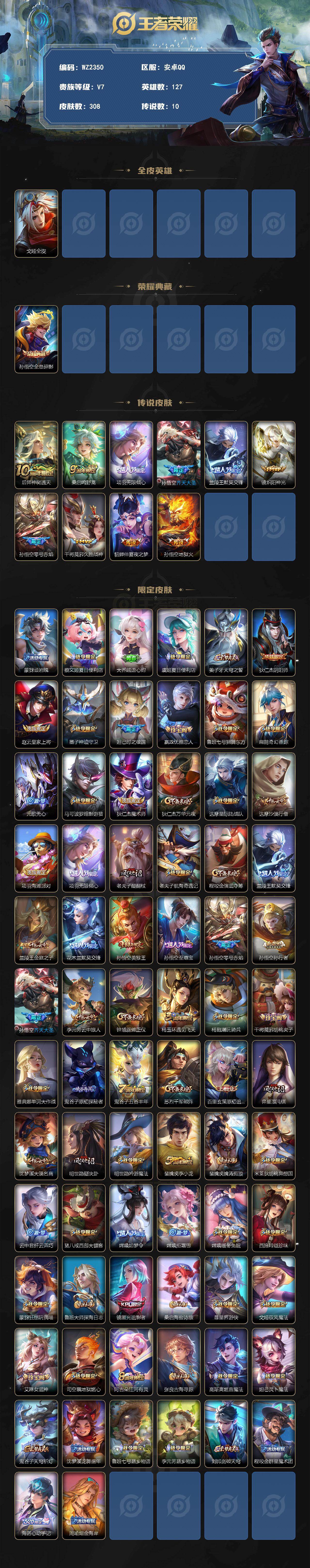 308皮肤-1典藏皮肤-10传说-84史诗 【英雄全皮】:戈娅全皮 【荣耀典藏】:孙悟空全息碎影