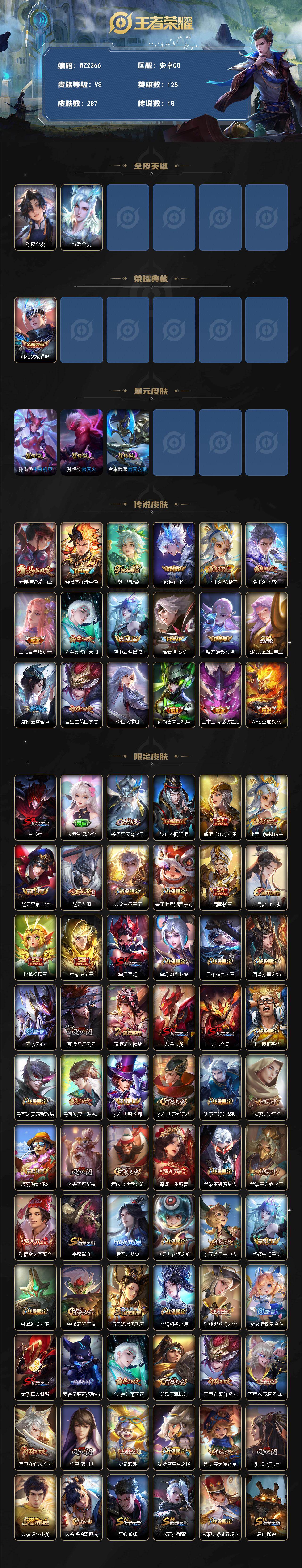 V8-287皮肤-1典藏皮肤-18传说-77史诗 【英雄全皮】:孙权全皮,敖隐全皮 【荣耀典藏】:韩信弑枪猎影
