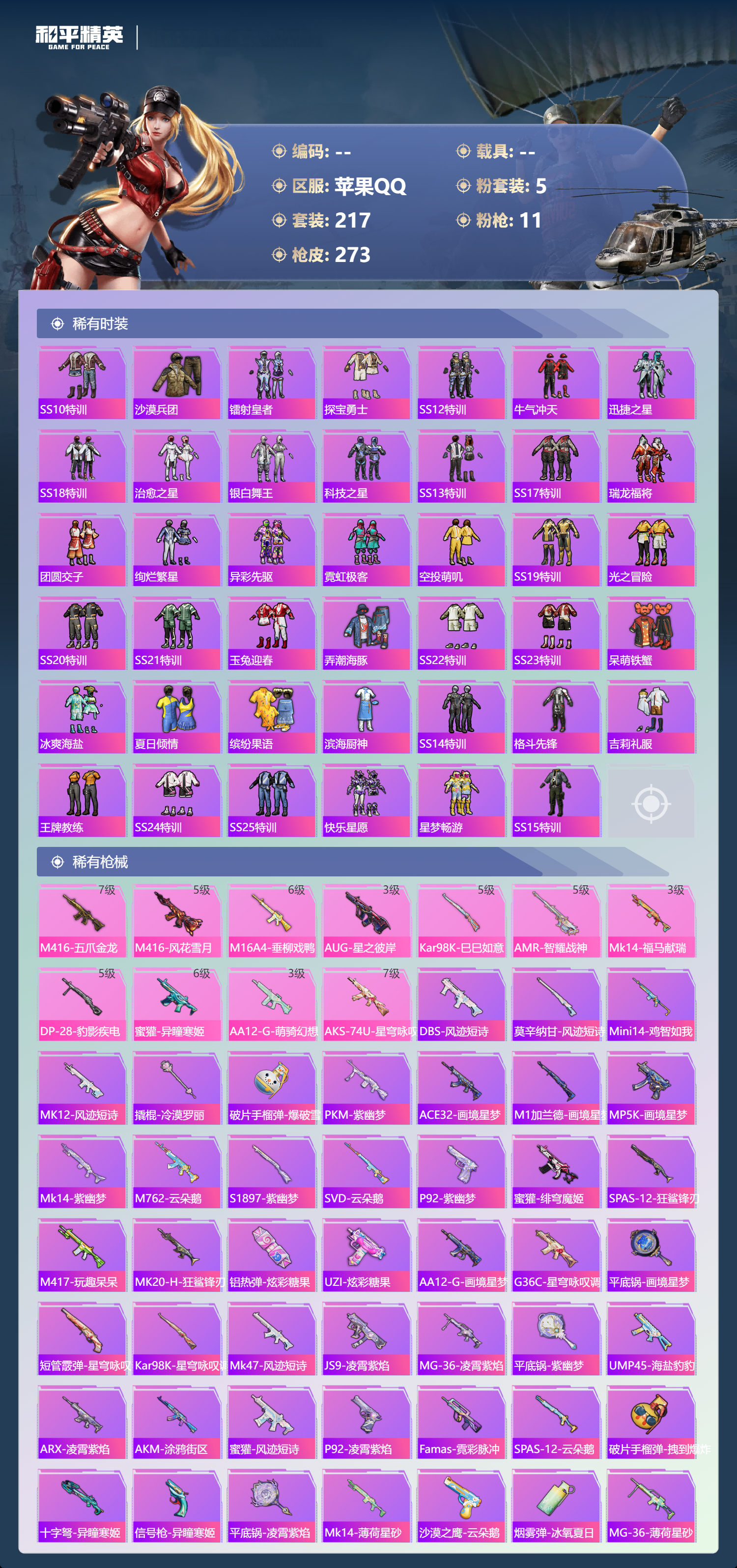 16王牌印记-5粉装-11特效枪-89419热力值-