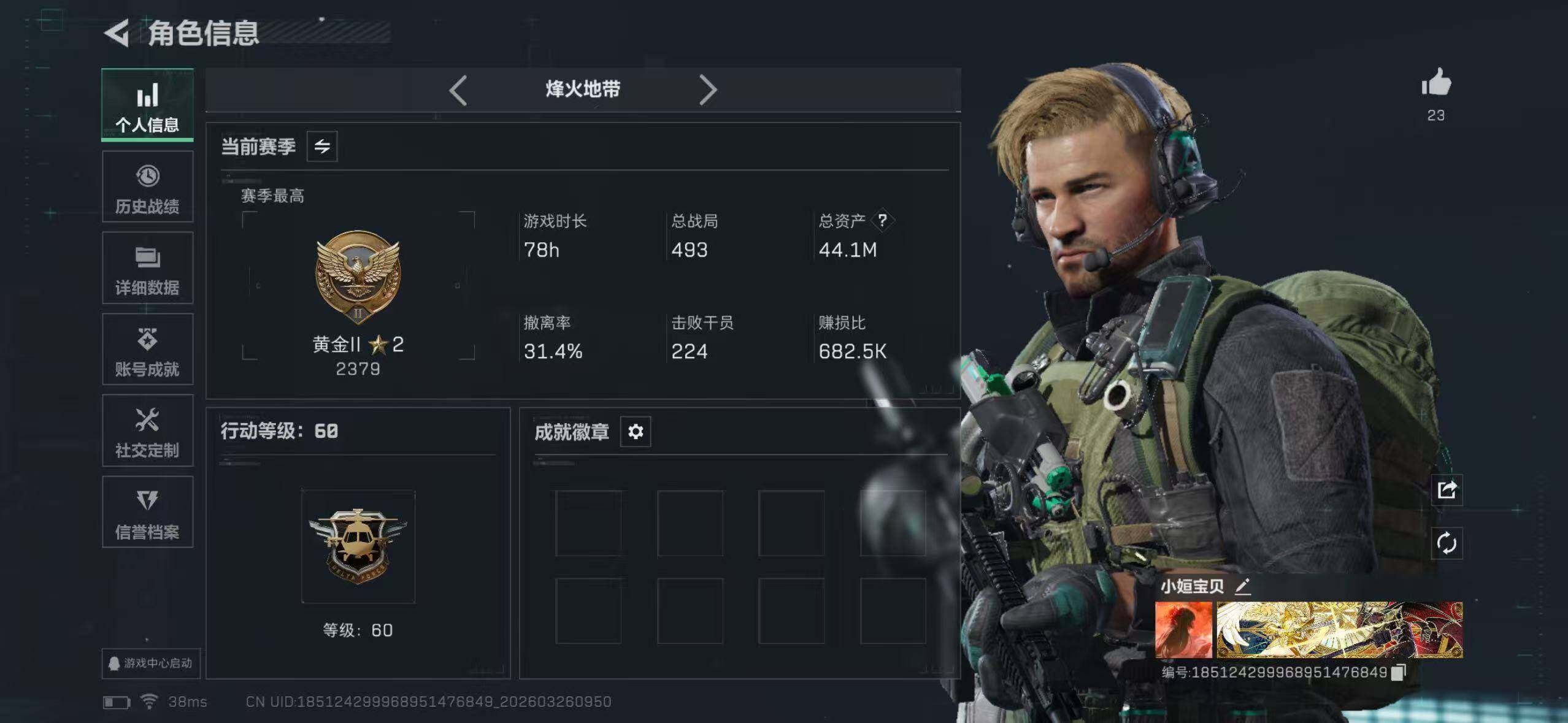 44m总资产-1403k哈夫币-60烽火等级 骇爪-维什戴尔 近战-暗星