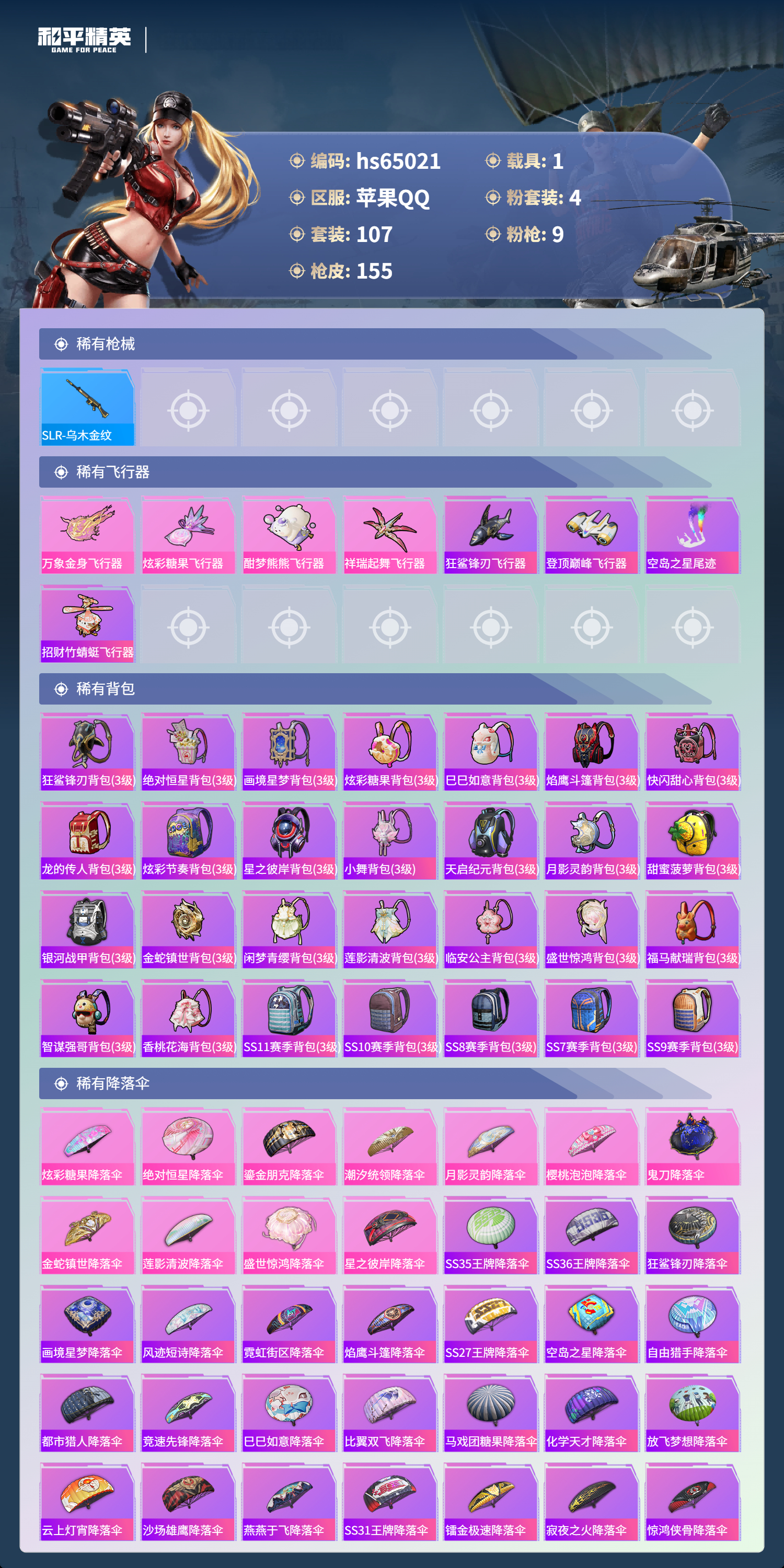 7王牌印记-有战神框-4粉装-9特效枪-1载具