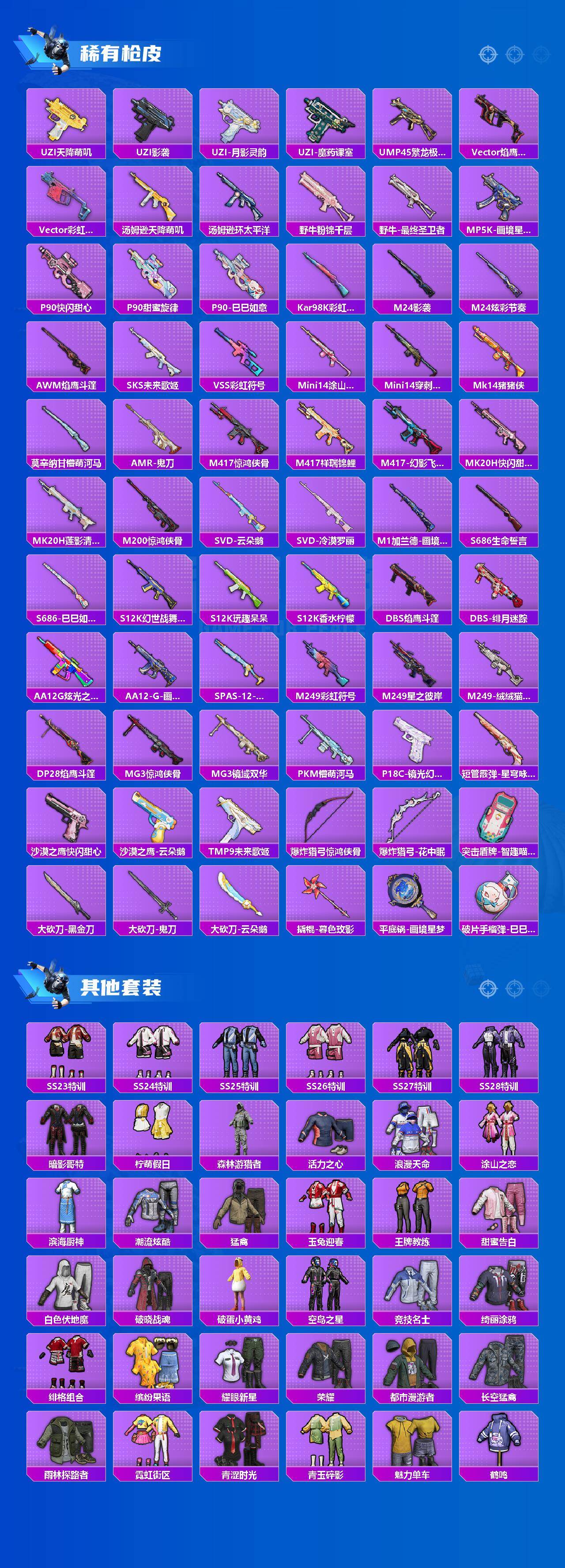 【粉色枪皮等级】:AKM-绿萝繁花(五级),SCAR-L-锦绣绵绵(五级),AUG-暖羊咩咩(五级),ACE32-萌骑漫游(三级),AKS