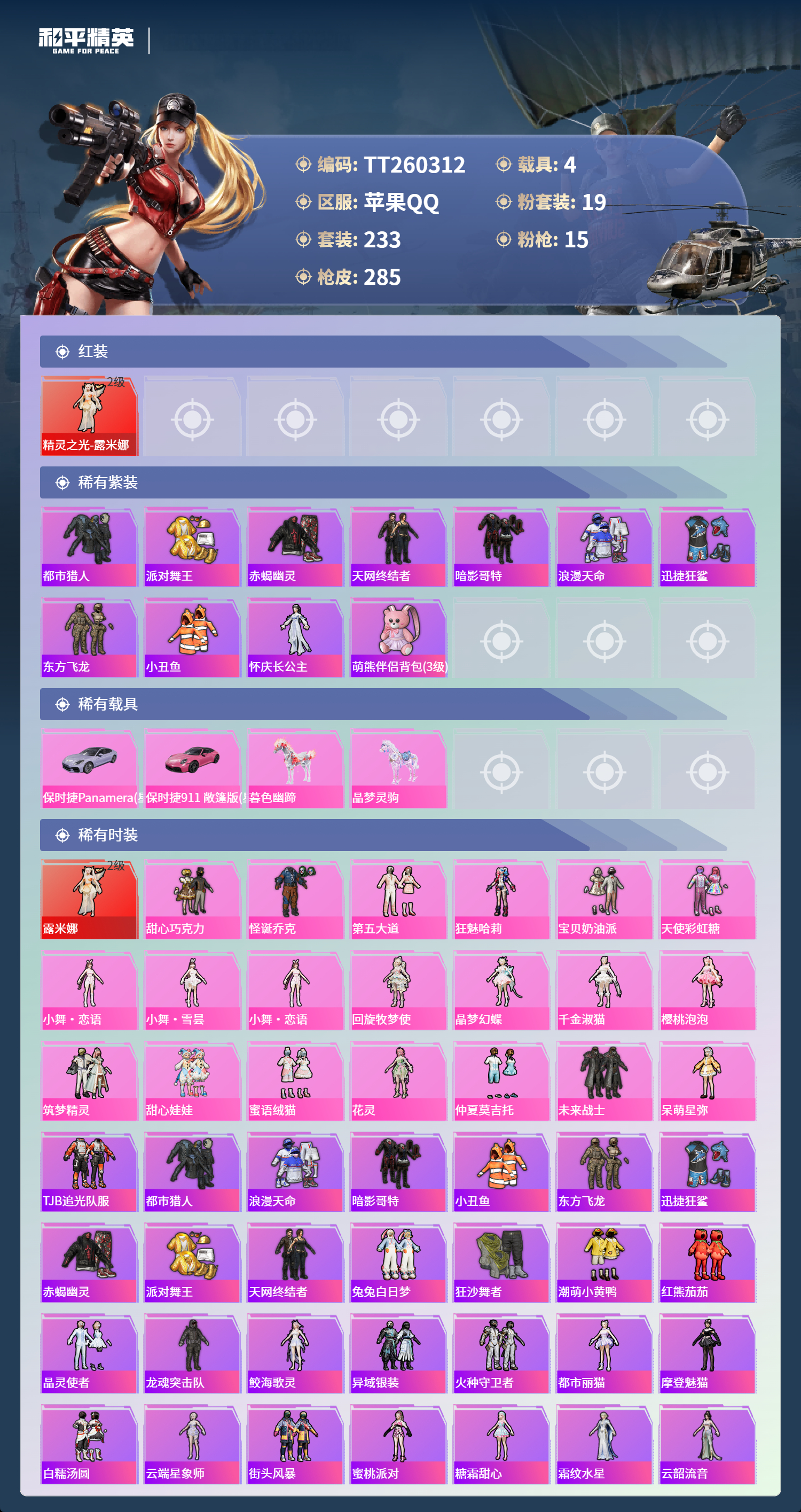 露米娜升级车小丑天网男神号 -19王牌印记-1红装-19粉装-15特效