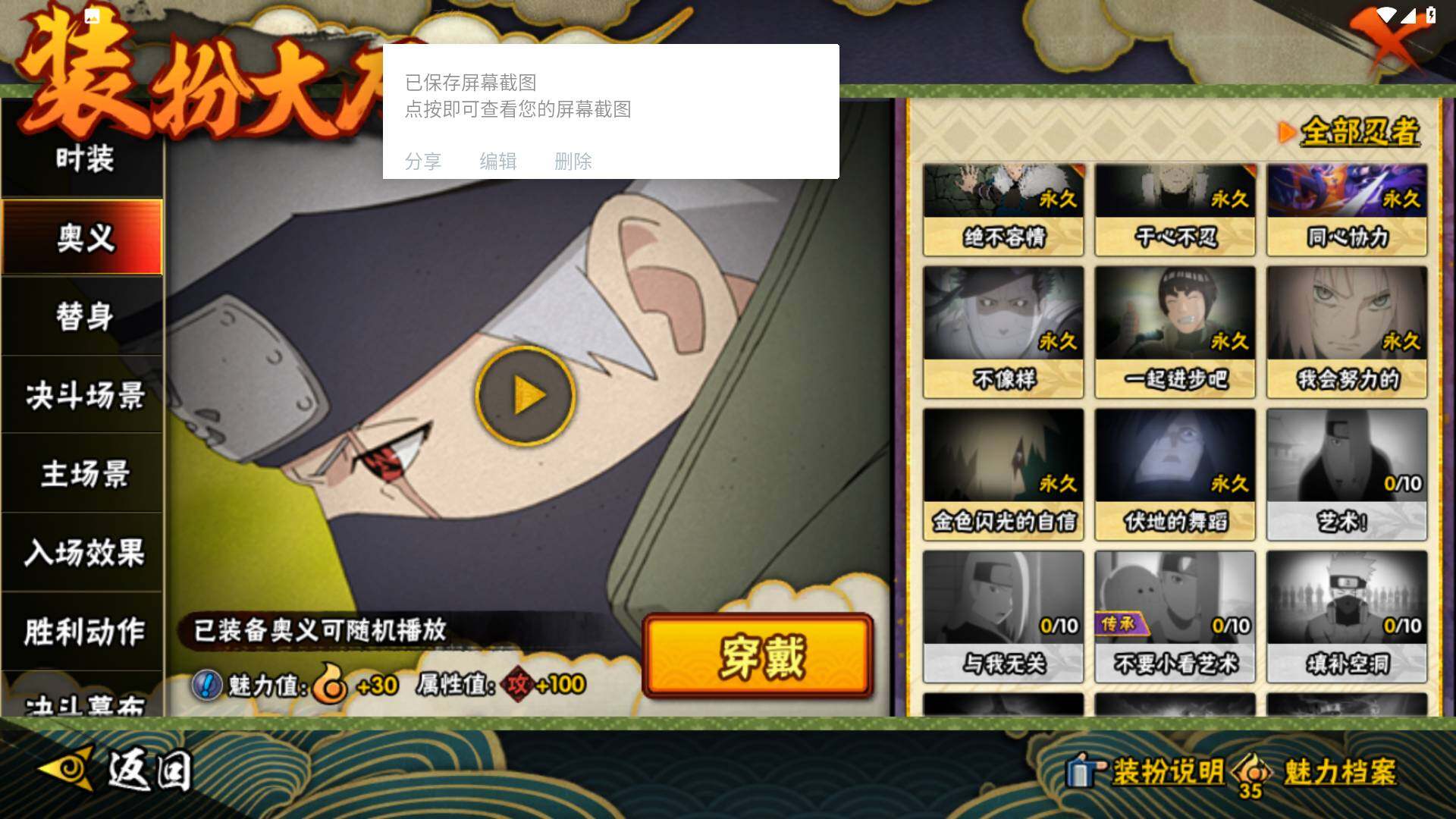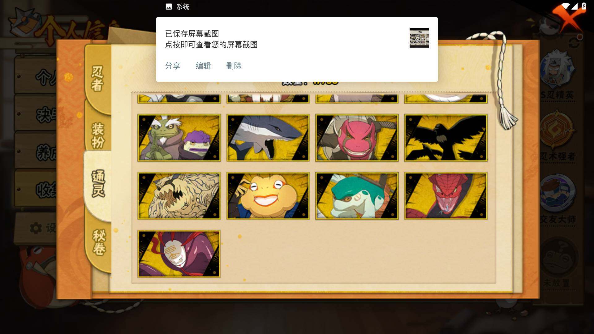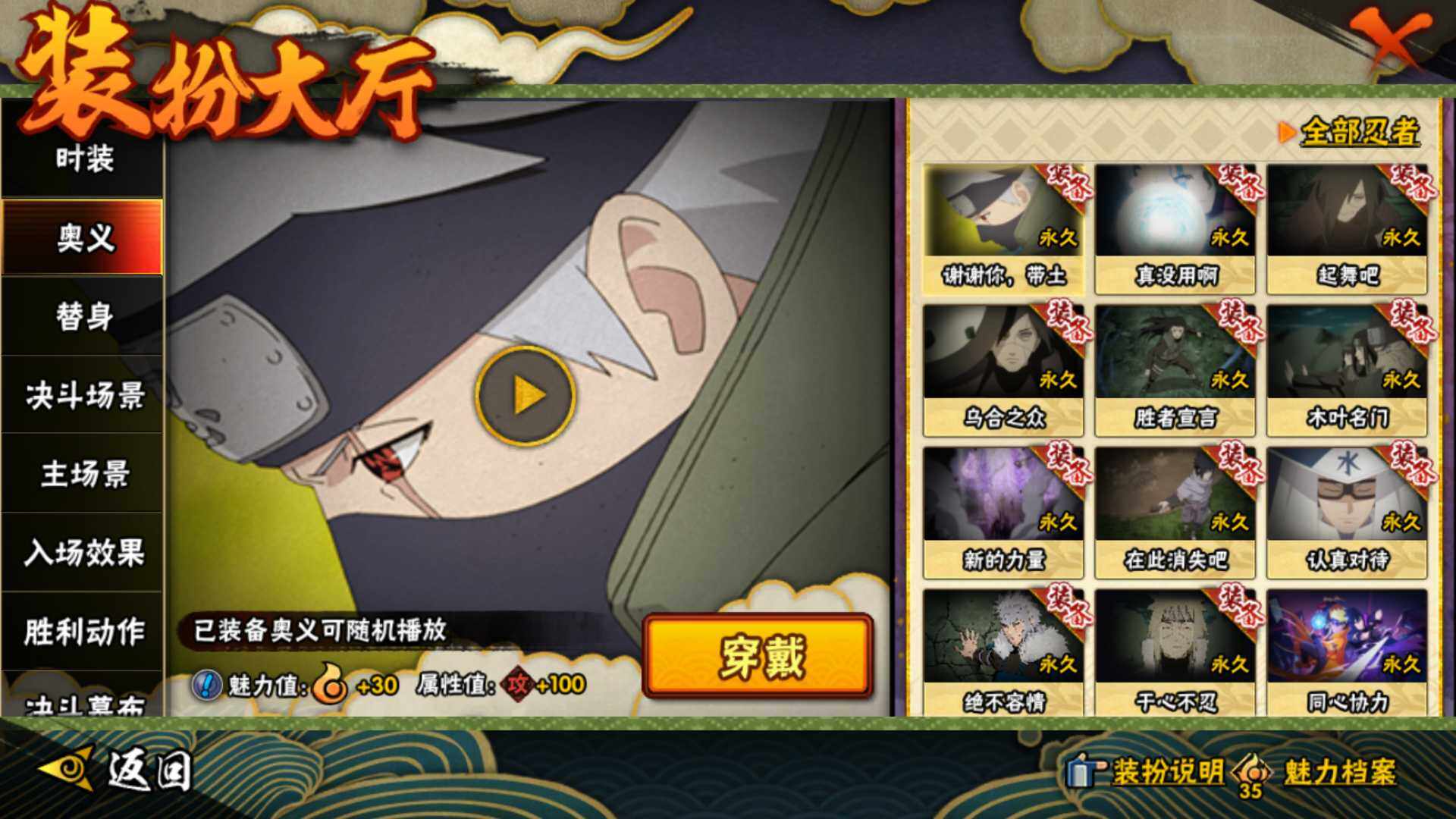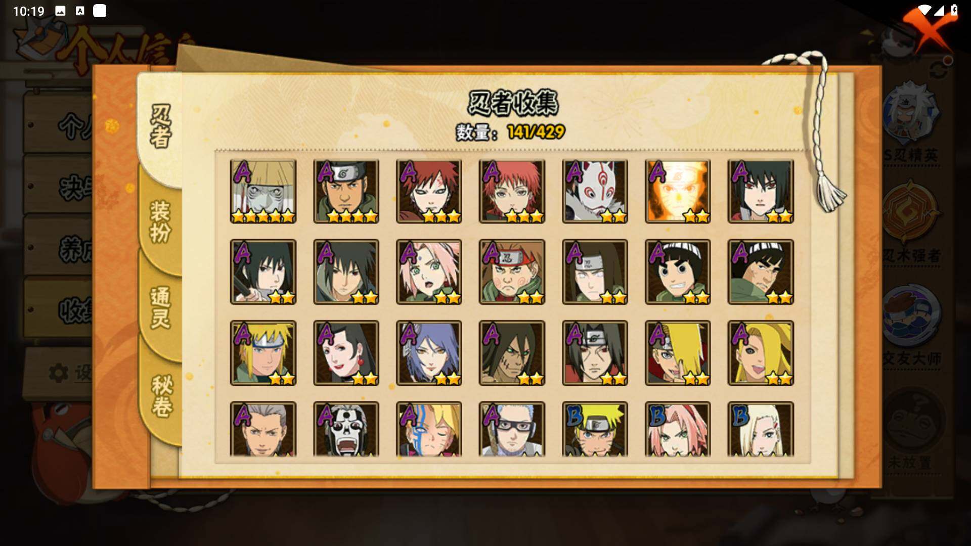 【S级忍者】:长门「秽土转生」(3星),波风水门「秽土转生」(3星),千手扉间「秽土转生」(3星),宇智波斑「秽土转生·解」(3星),宇智波鼬「须佐能乎」(3星),旗木卡卡西「须佐能乎」(3星),自来也「舞之豪杰」(3星),纲手(3星),波风水门(3星),佩恩「天道」(3星),宇智波佐助「永恒万花筒」(3星),大筒木舍人