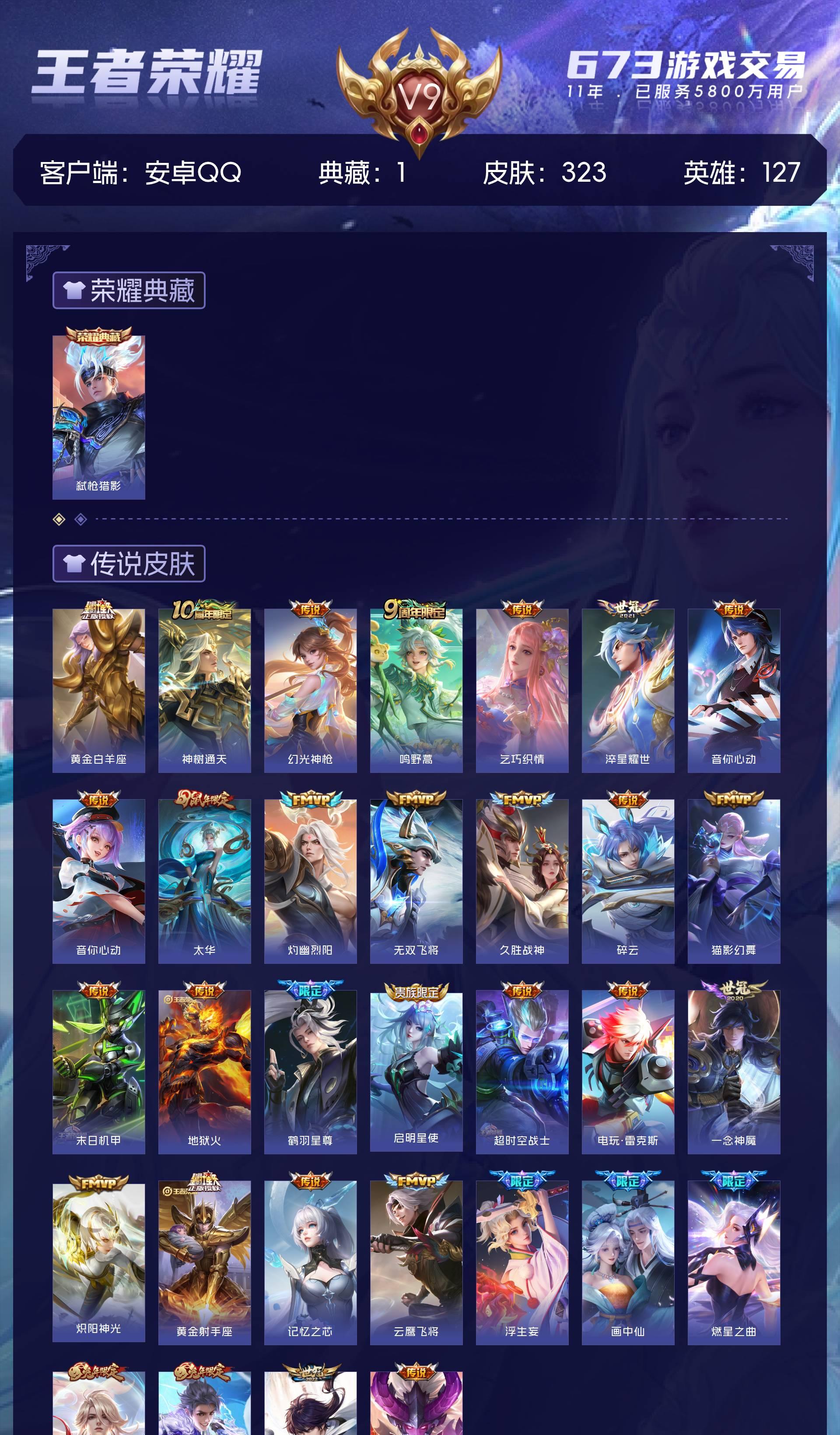 V9 皮肤323 英雄127 最强王者 荣耀典藏1 传说32