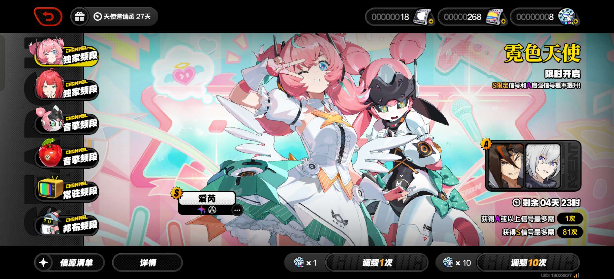 一命青衣1命薇薇安,1命莱卡恩,1命丽娜,零号·安比,雨果,雅,莱特,艾莲,耀嘉音,爱芮,爱丽丝,照