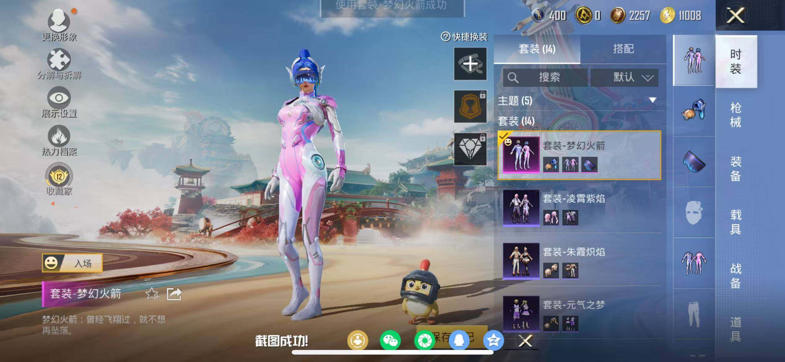 【梦幻火箭·东方飞龙·1特效枪】苹果 手Q-1粉装-1特效枪-0载具-0粉色飞行器-5029热力值-1王牌印记-14套装-17枪皮
