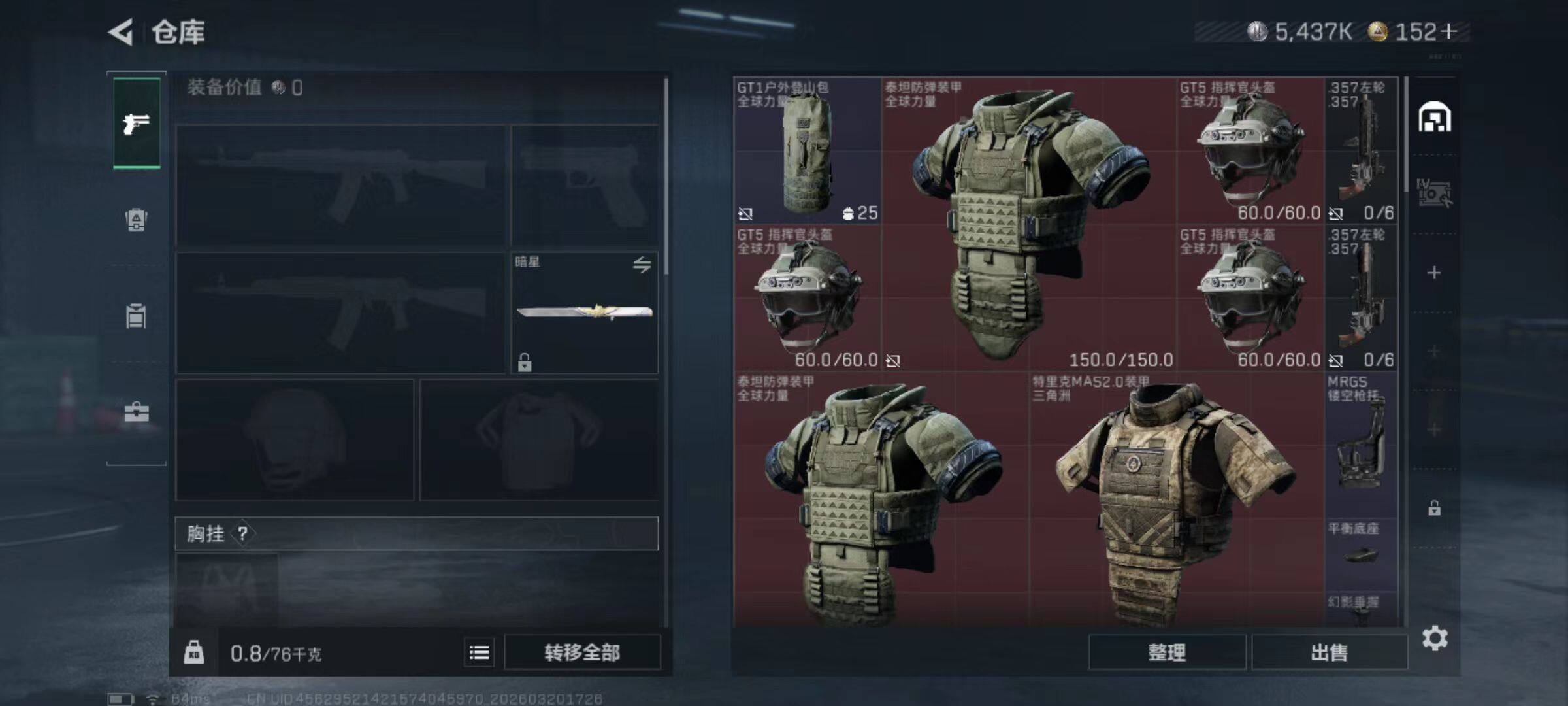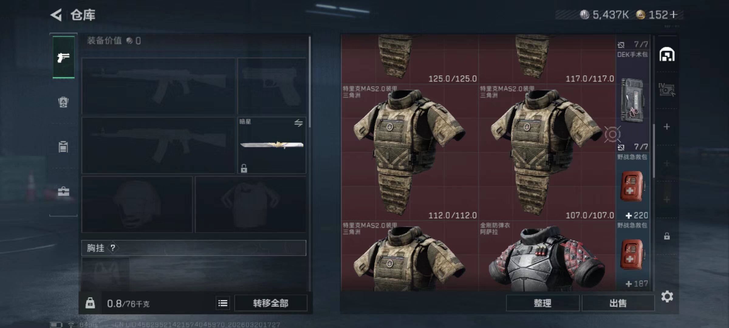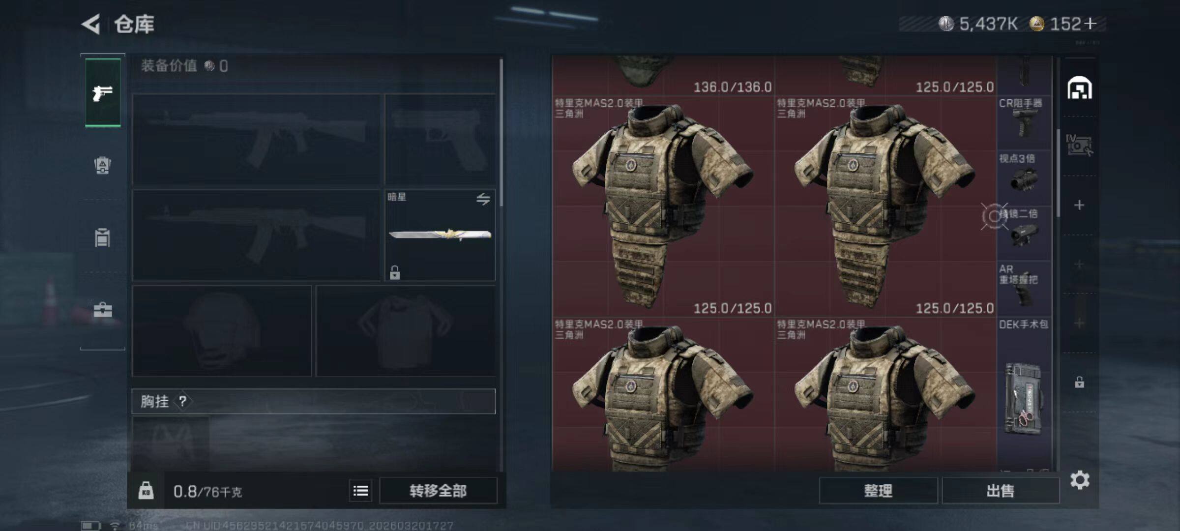 总资产(M):54M/哈夫币(K):5437K/哈夫币(K):5437K/传说枪皮数:38/全面战场等级:50_段位:统帅/烽火地带等级:60_段位:钻石/蛊-能天使午夜邮差/深蓝-不破誓约/红狼-电锯惊魂/露娜-金牌射手/乌鲁鲁-荒原猎手/近战-暗星/近战-处刑者1级/近战-黑鹰/M4A1突击步枪-蚀金玫瑰/M4A1突击步枪-阿米娅/AKM突击步枪-锦绣/ASh-12战斗步枪-鹅鸭杀/K416