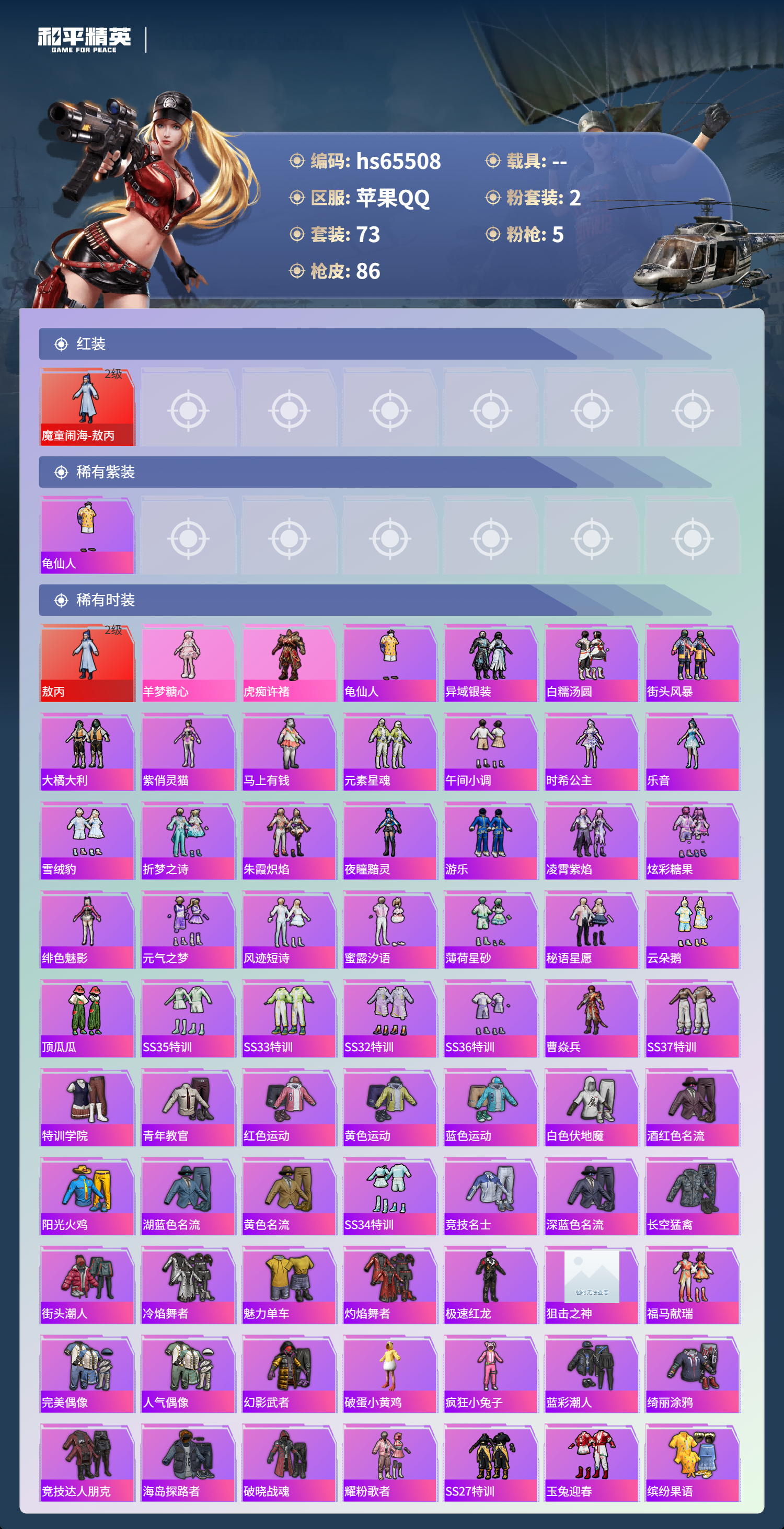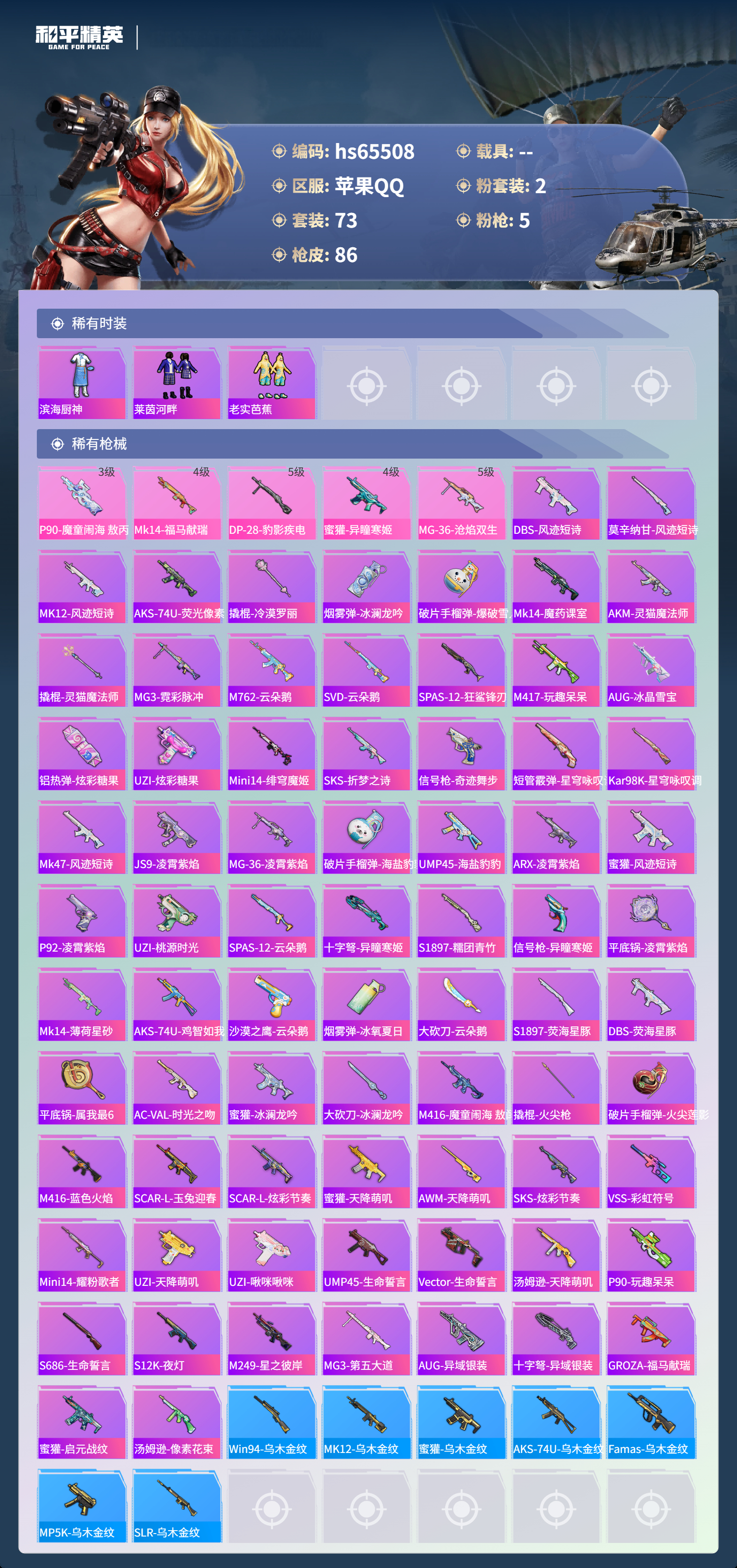 -6王牌印记-1红装-2粉装-5特效枪-27985热力值-73套装