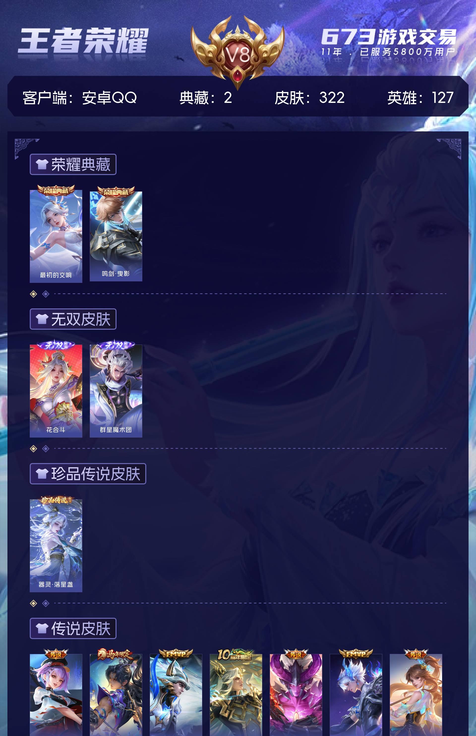 V8 皮肤322 英雄127 非凡王者 荣耀典藏2 无双皮肤2 珍品传说1 星传说3 传说32