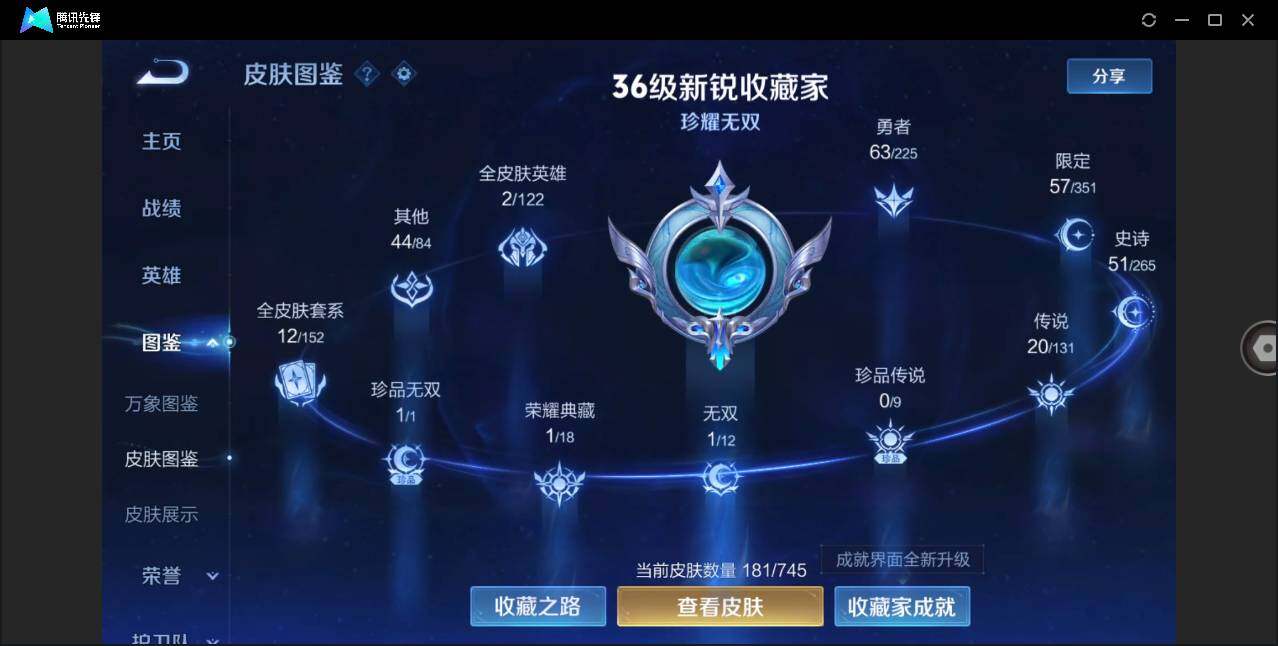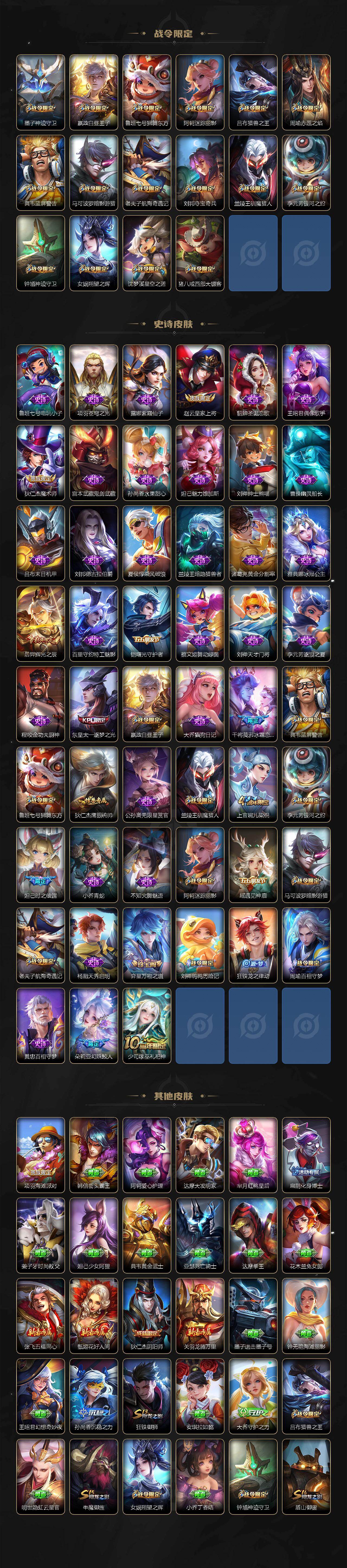 安卓Q-V9-最强王者段位-127英雄-181皮肤-1典藏-1珍品无双-1无双-0珍品传说-20传说-51史诗