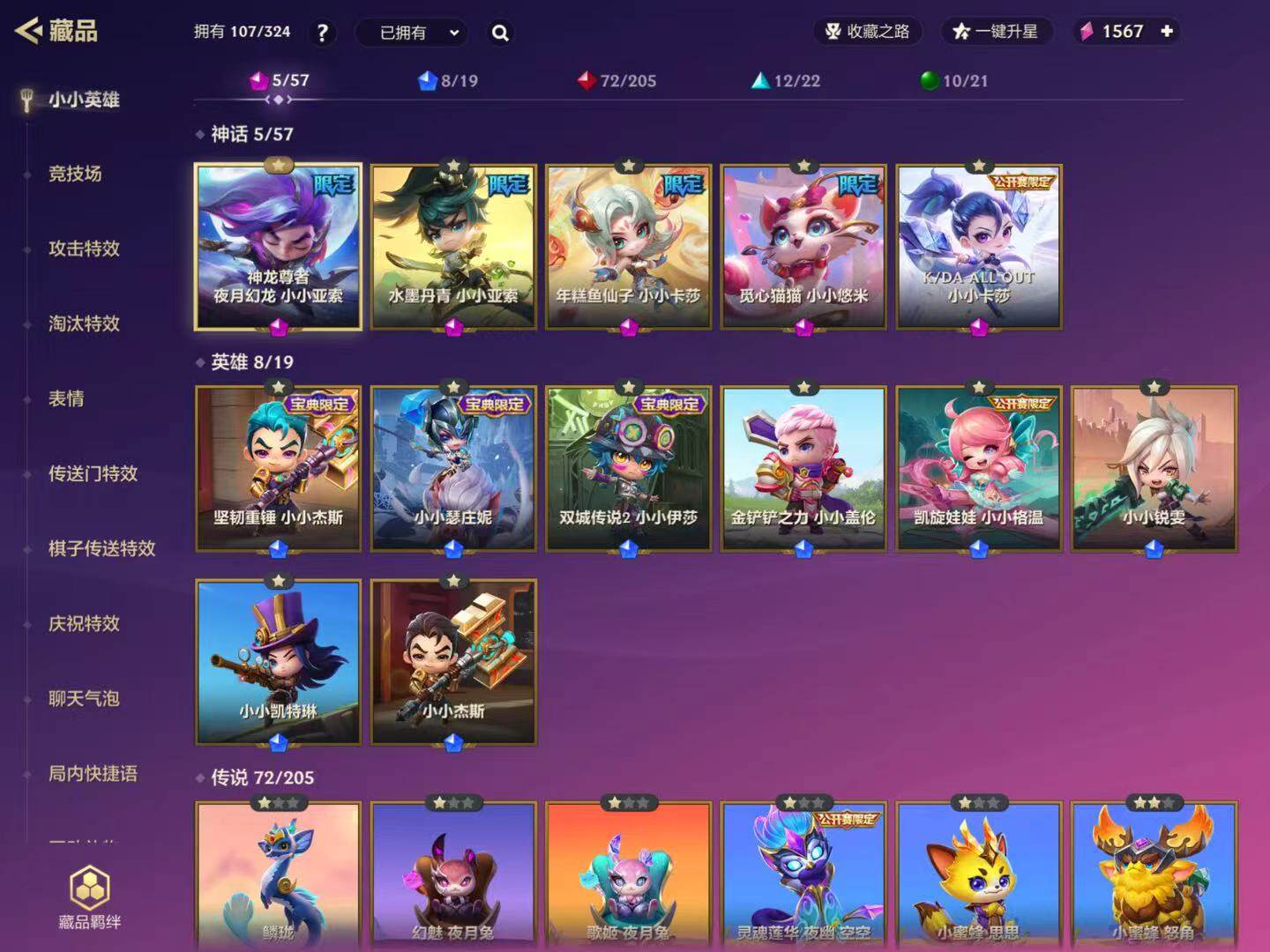 【神话小小英雄】:K/DA ALL OUT 小小卡莎,神龙尊者 夜月幻龙 小小亚索,年糕鱼仙子 小小卡莎,觅心猫猫 小小悠米,水墨丹青 小小亚索