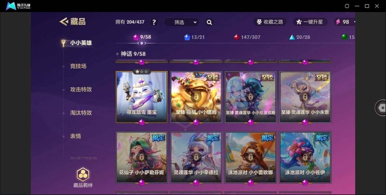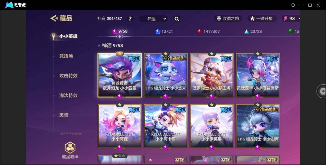 【神话小小英雄】:K/DA ALL OUT 小小阿卡丽,K/DA ALL OUT 小小伊芙琳,K/DA ALL OUT 小小阿狸,灵魂莲华 小小厄斐琉斯,神龙尊者 夜月幻龙 小小亚索,EDG 银龙骑士 小小佐伊,EDG 银龙骑士 小小悠米,魄罗骑士 小小瑟庄妮,寻龙踏雪 墨宝