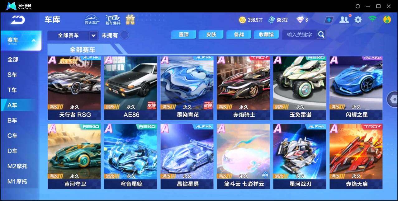 【永久A车】:星钻雷诺,拼拼乐,星河逐影,布加迪BOLIDE,科技先锋,双叶幼稚园校车,龙珏雷诺,封印之杖,阿斯顿马丁Valkyrie,白玉神驹·金辉,AE86,墨染青花,穹音星鲸,晶钻星爵,黄河守卫,筋斗云,星河战刃,玉兔雷诺,赤焰天启,赤焰骑士,闪耀之星,雷诺,圣光使者,帝王,蔚蓝迷梦,缤纷神驹,超能橘喵,紫焰铠甲,凌天,风暴剃刀,月光女神,侠影传说,惊鸿,白玉