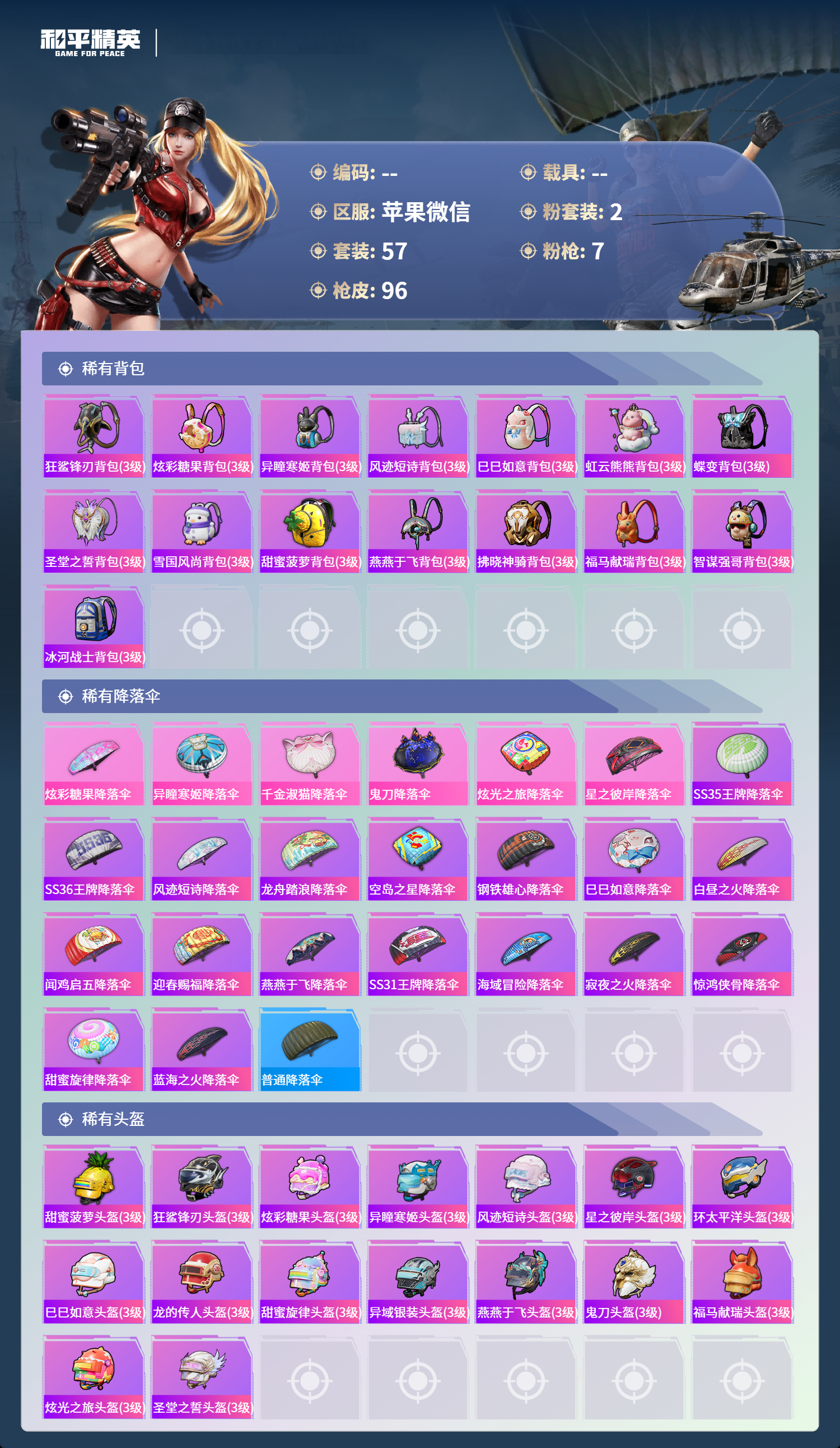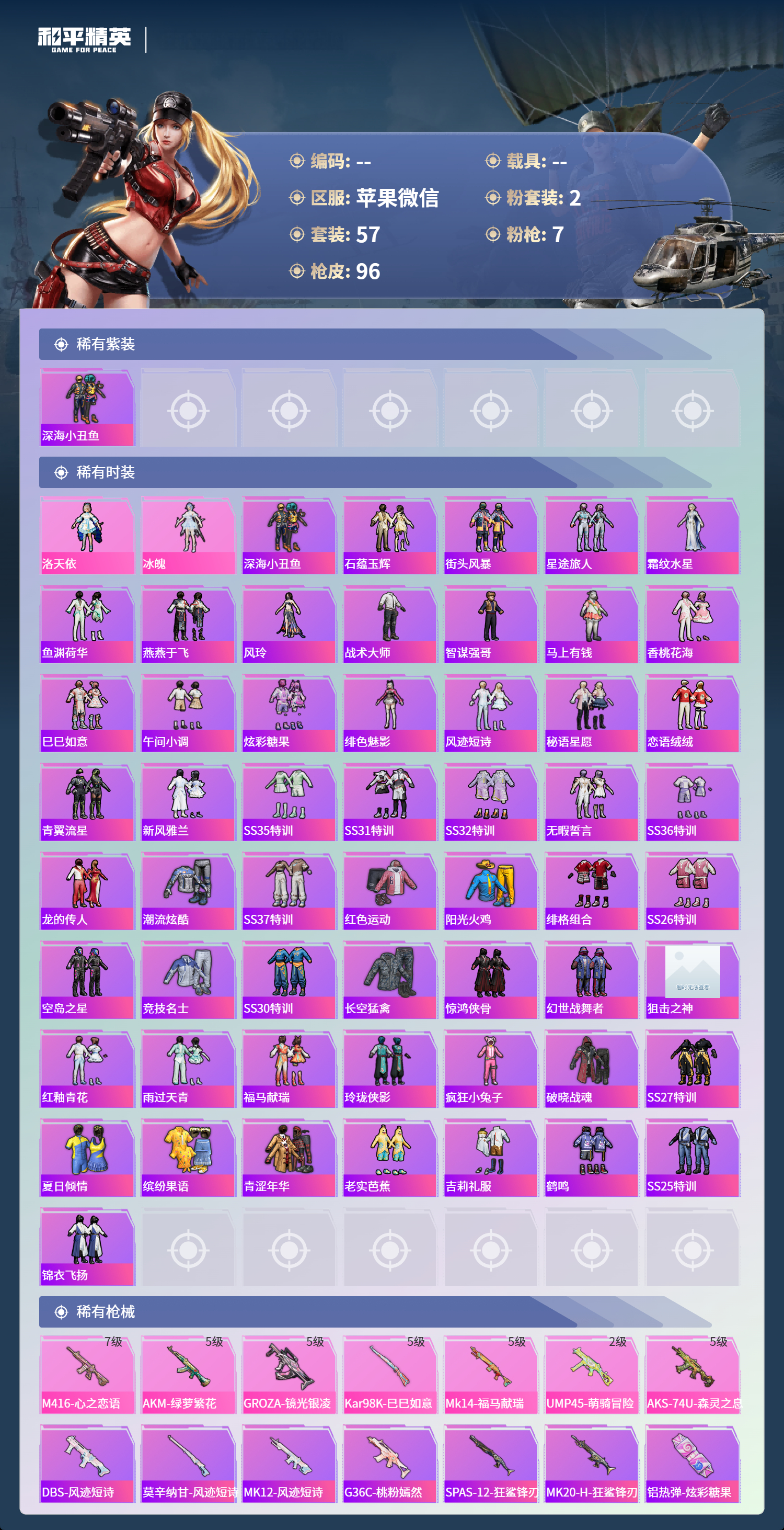 6王牌印记-2粉装-7特效枪-27748热力值-57套装