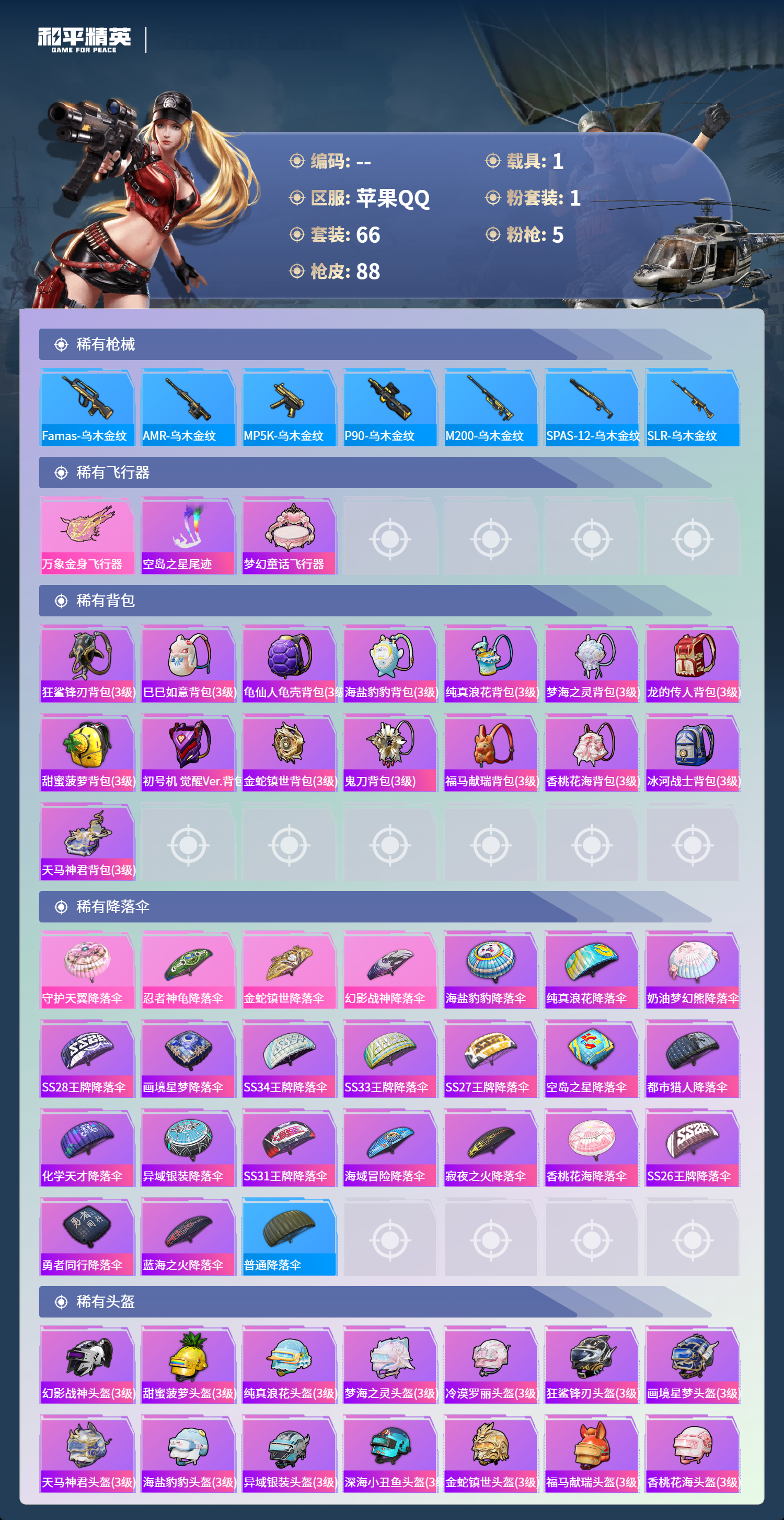 7王牌印记-1红装-1粉装-5特效枪-1载具