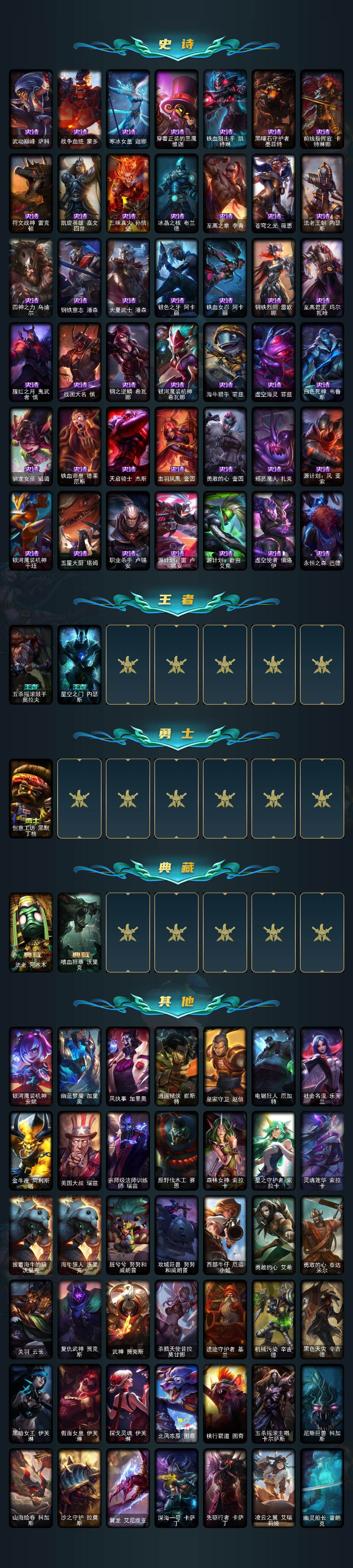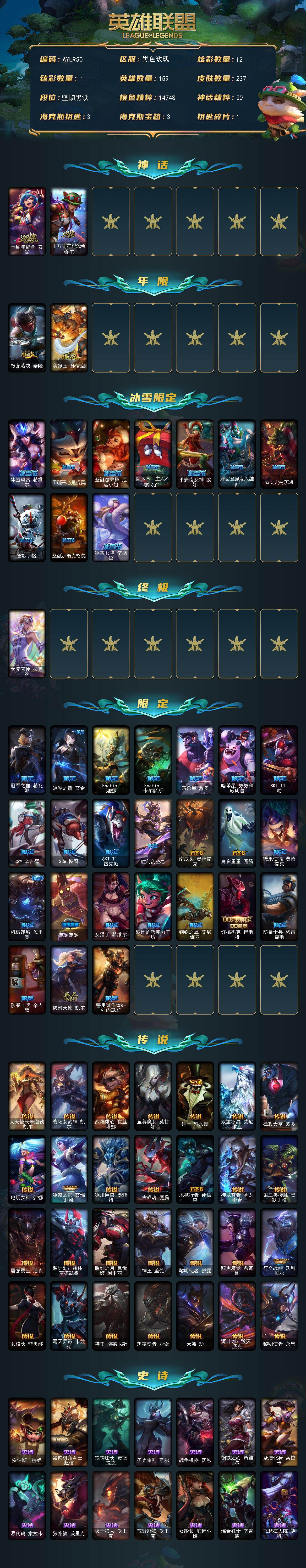 未定级段位-159英雄-237皮肤-12炫彩-1终极-2神话-37限定-28传说-56史诗