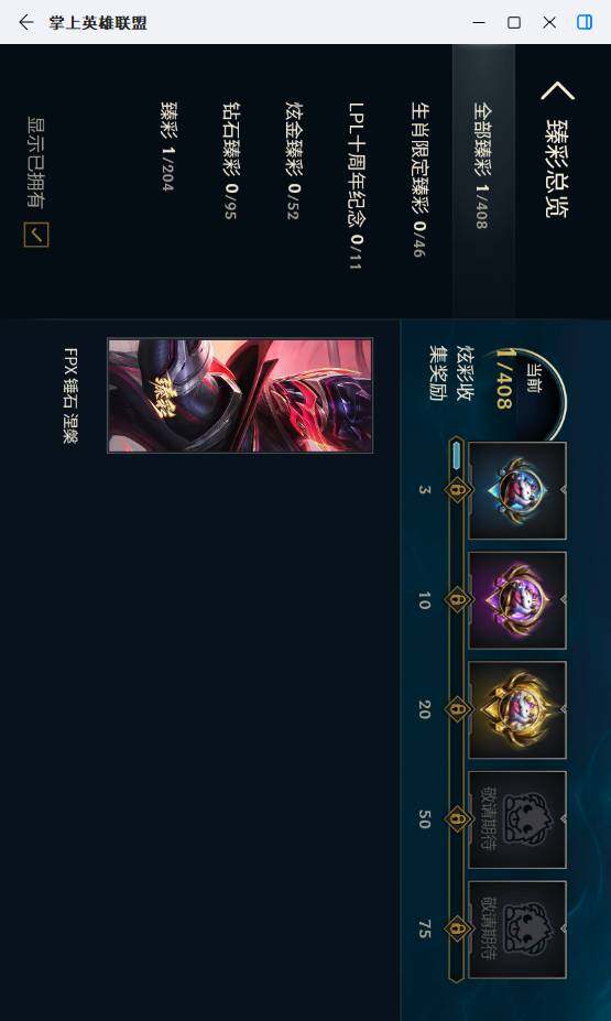 未定级段位-159英雄-237皮肤-12炫彩-1终极-2神话-37限定-28传