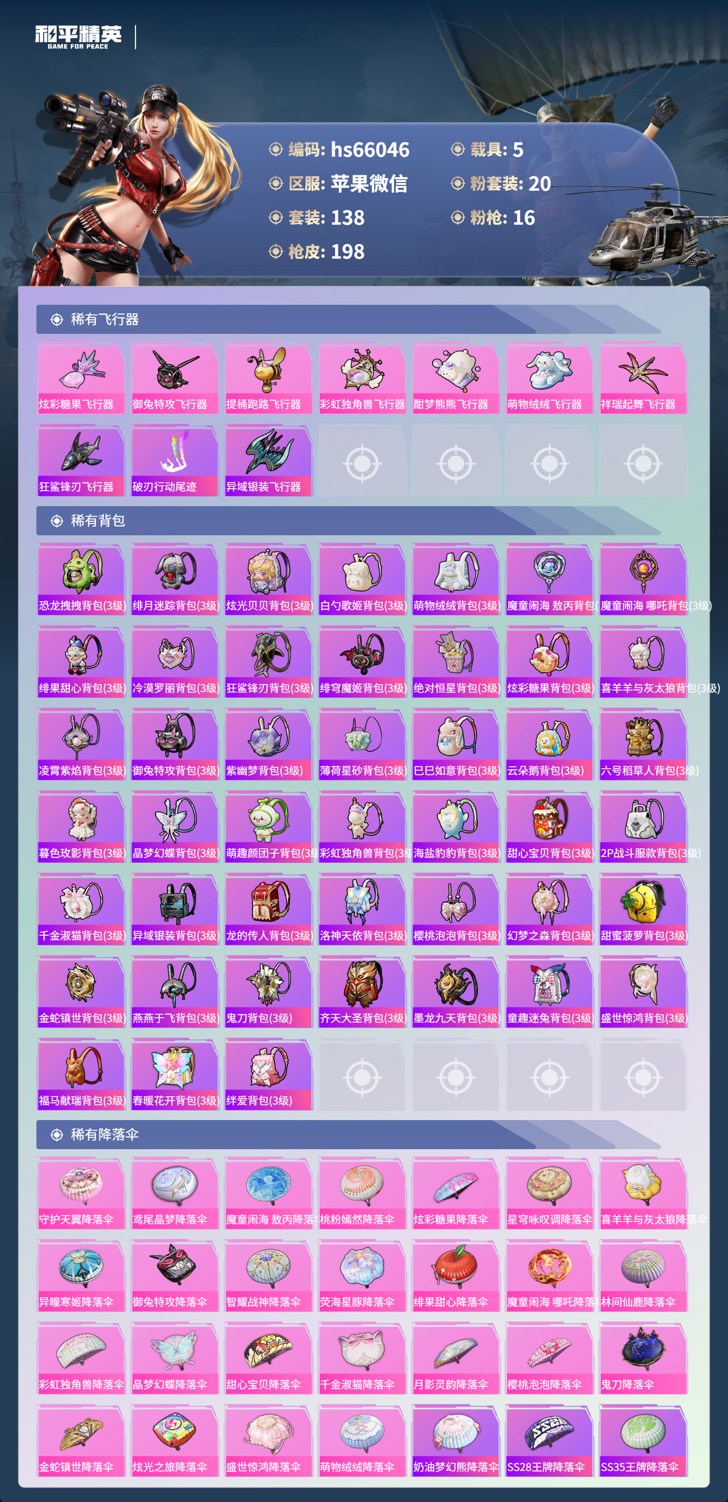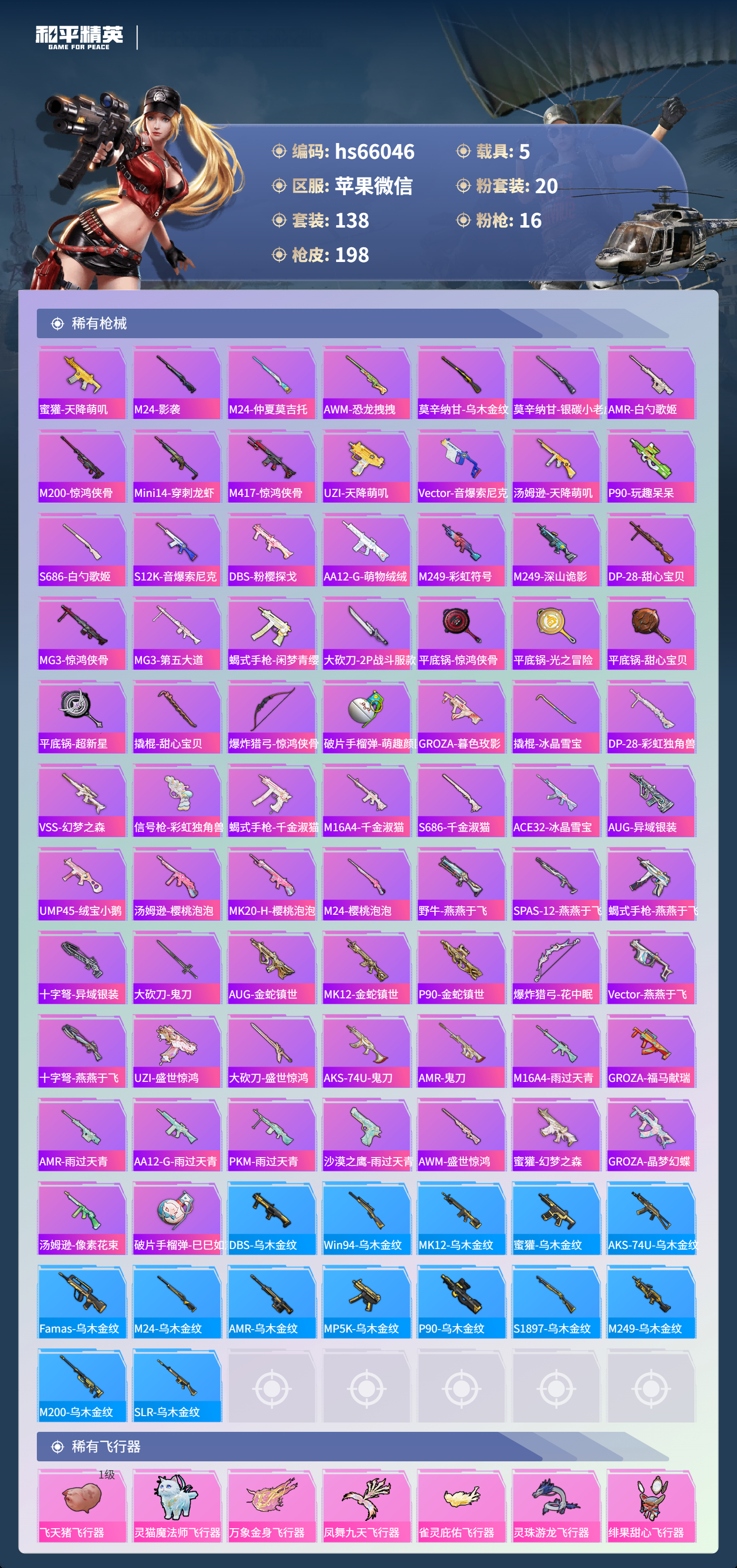 14王牌印记-4红装-20粉装-16特效枪-5载具-