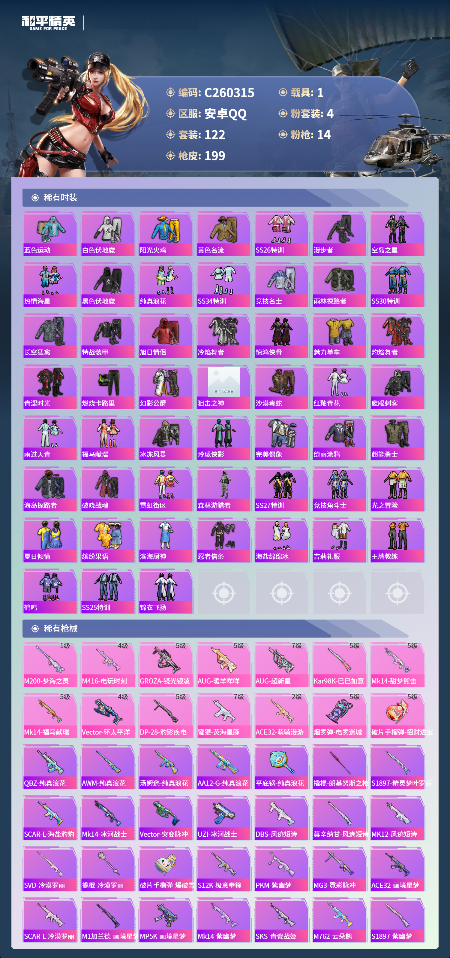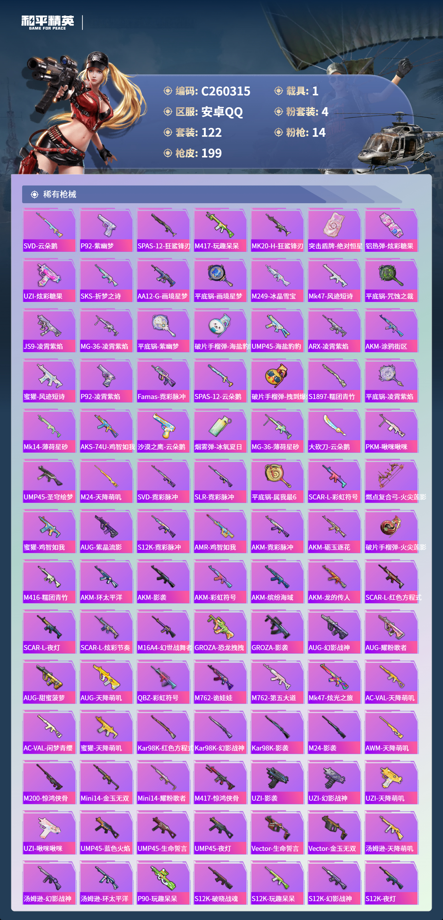7级AUG超新星 金鞋 幻影战神 -7王牌印记-4粉装-14特效枪