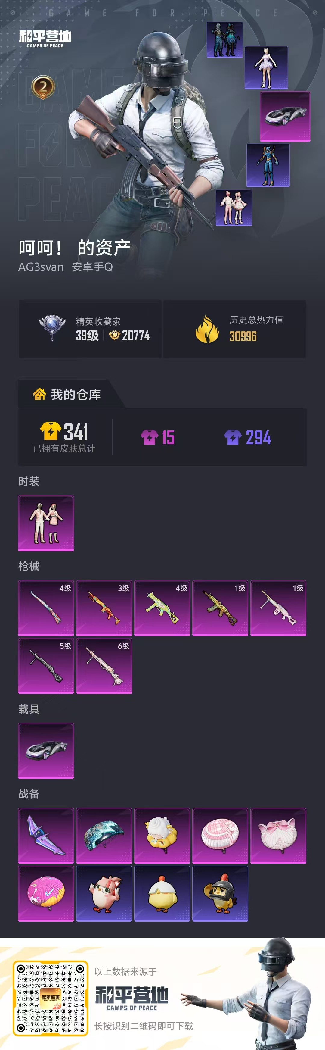 2王牌印记-1粉装-7特效枪-1载具-30996热力值