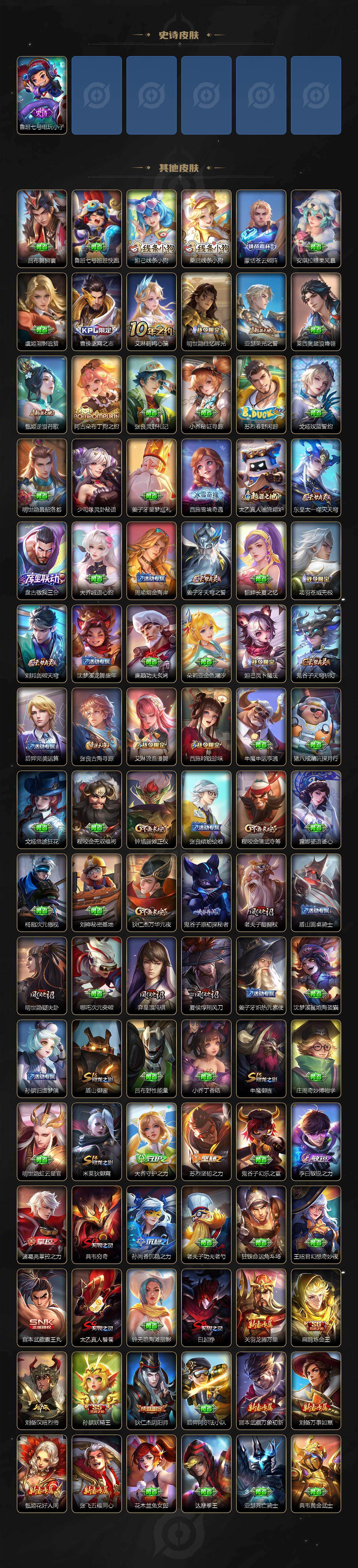 贵族9/皮肤256/典藏3/传说25/史诗59/英雄126/敖隐全皮/全息碎影