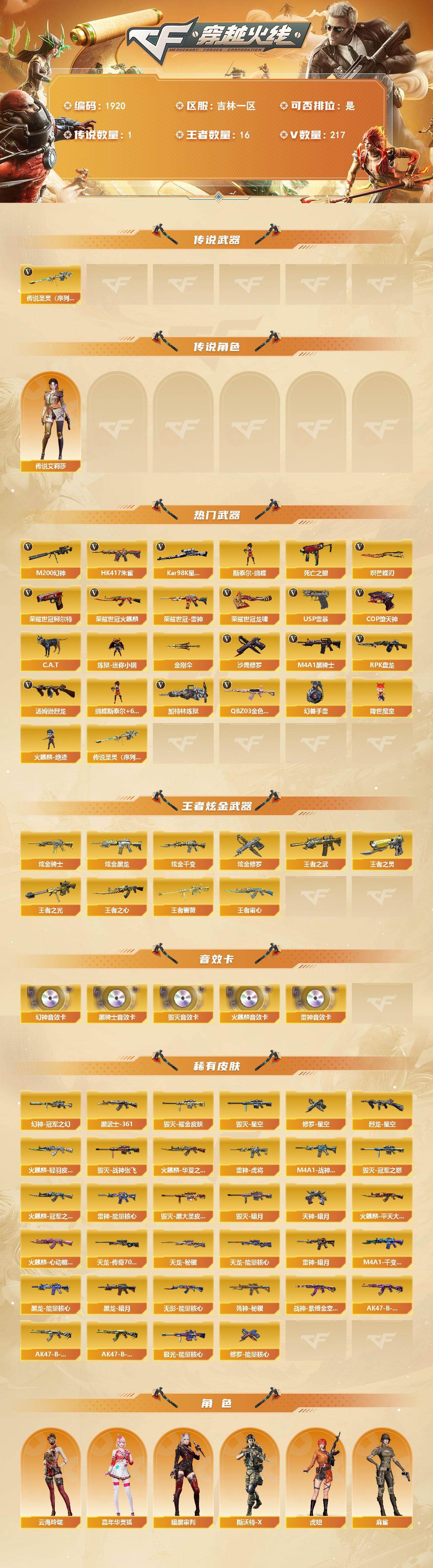 吉林一区-227V-16王者武器数-5炫金武器数