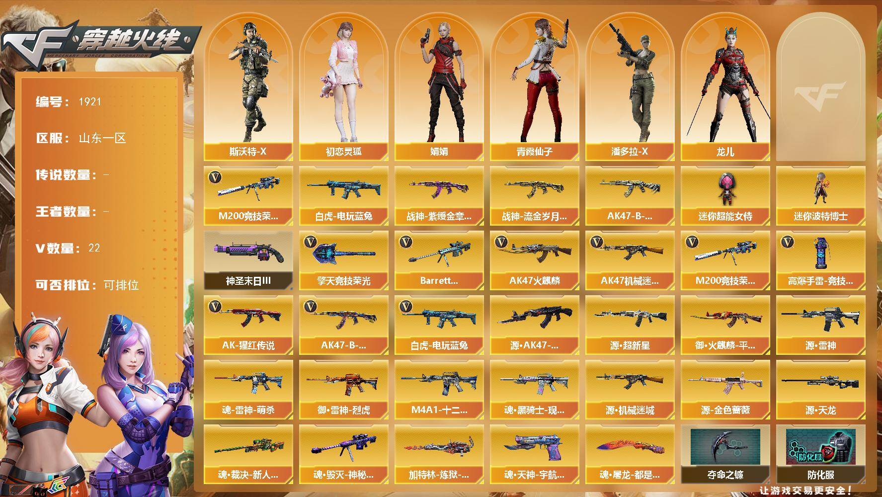 山东一区-22V-0王者武器数-0炫金武器数【热门武器】:M200-竞技荣光
