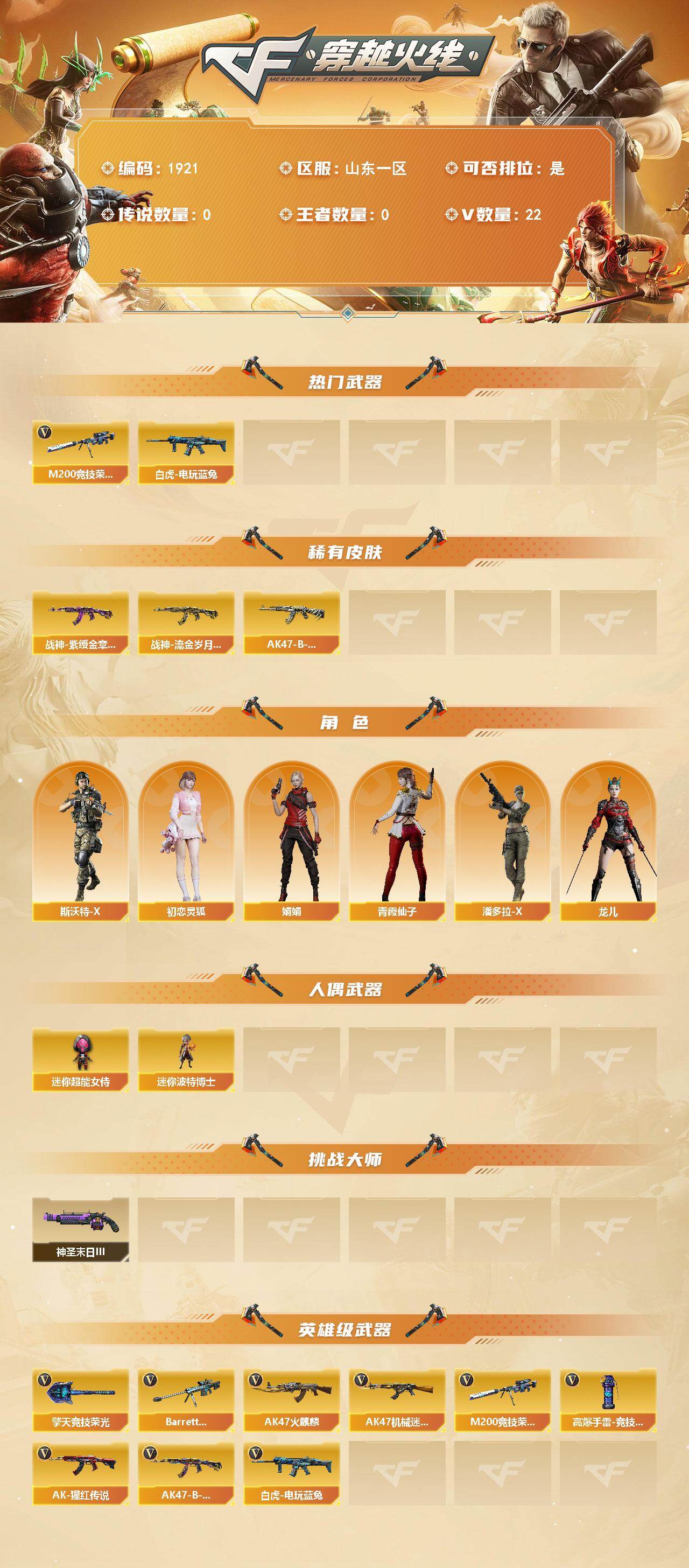 山东一区-22V-0王者武器数-0炫金武器数