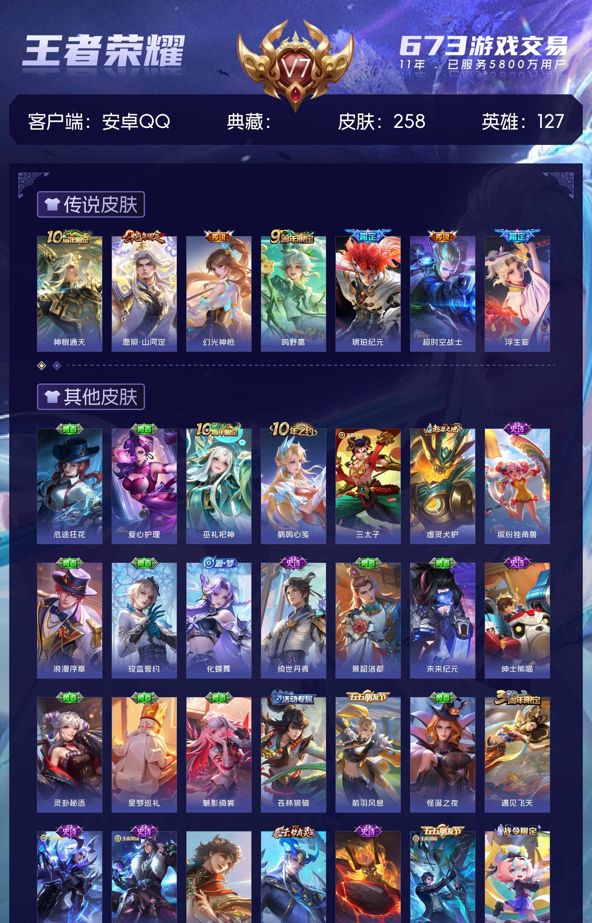 V7 皮肤258 英雄127 尊贵铂金 传说7