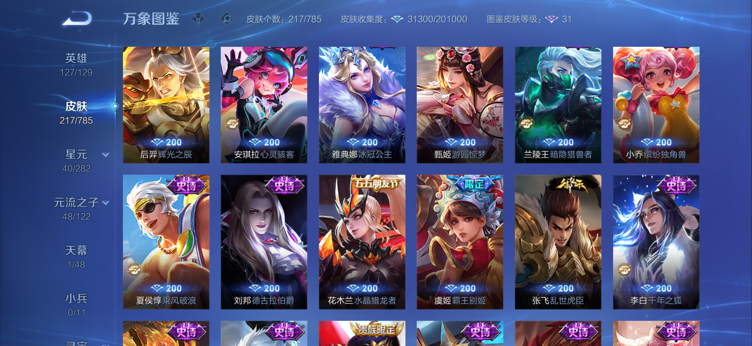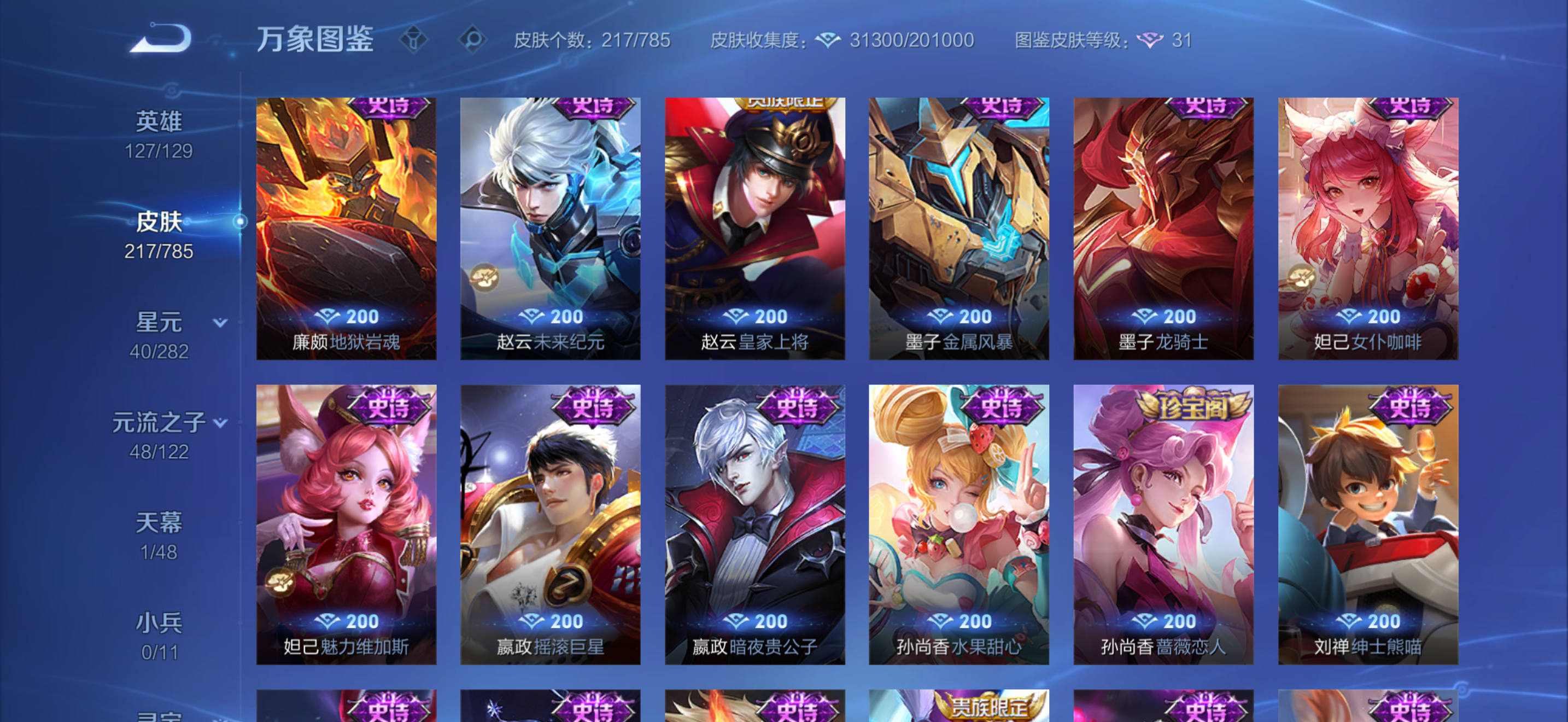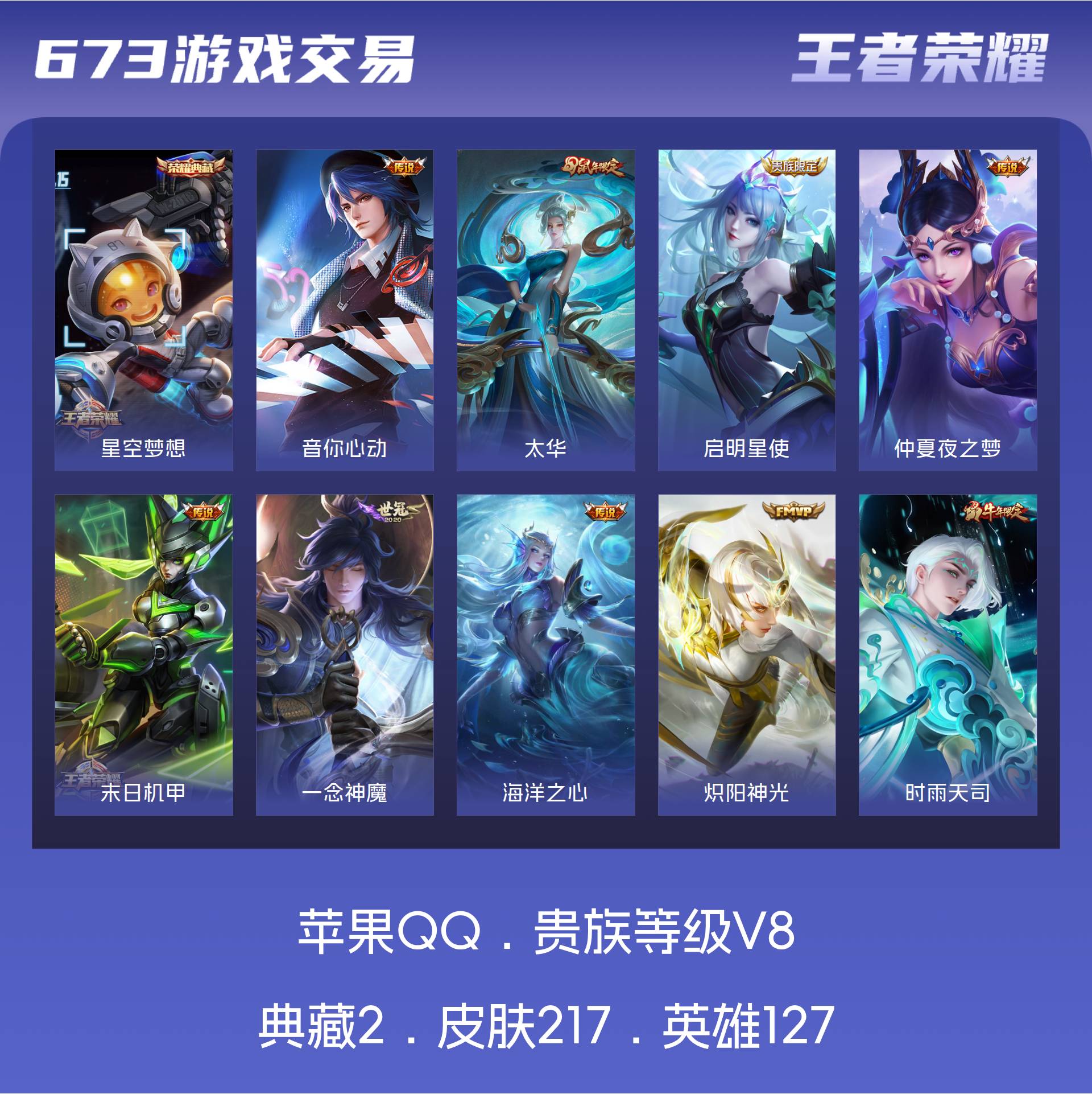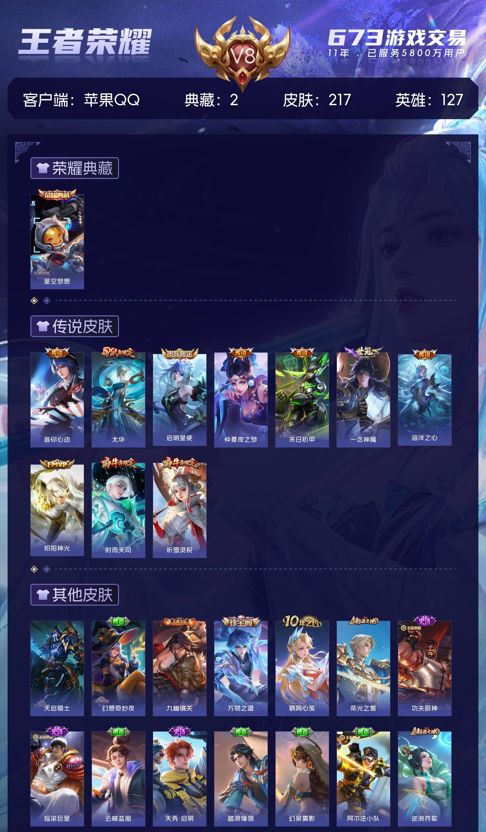 V8 皮肤217 英雄127 最强王者 荣耀典藏2 传说10