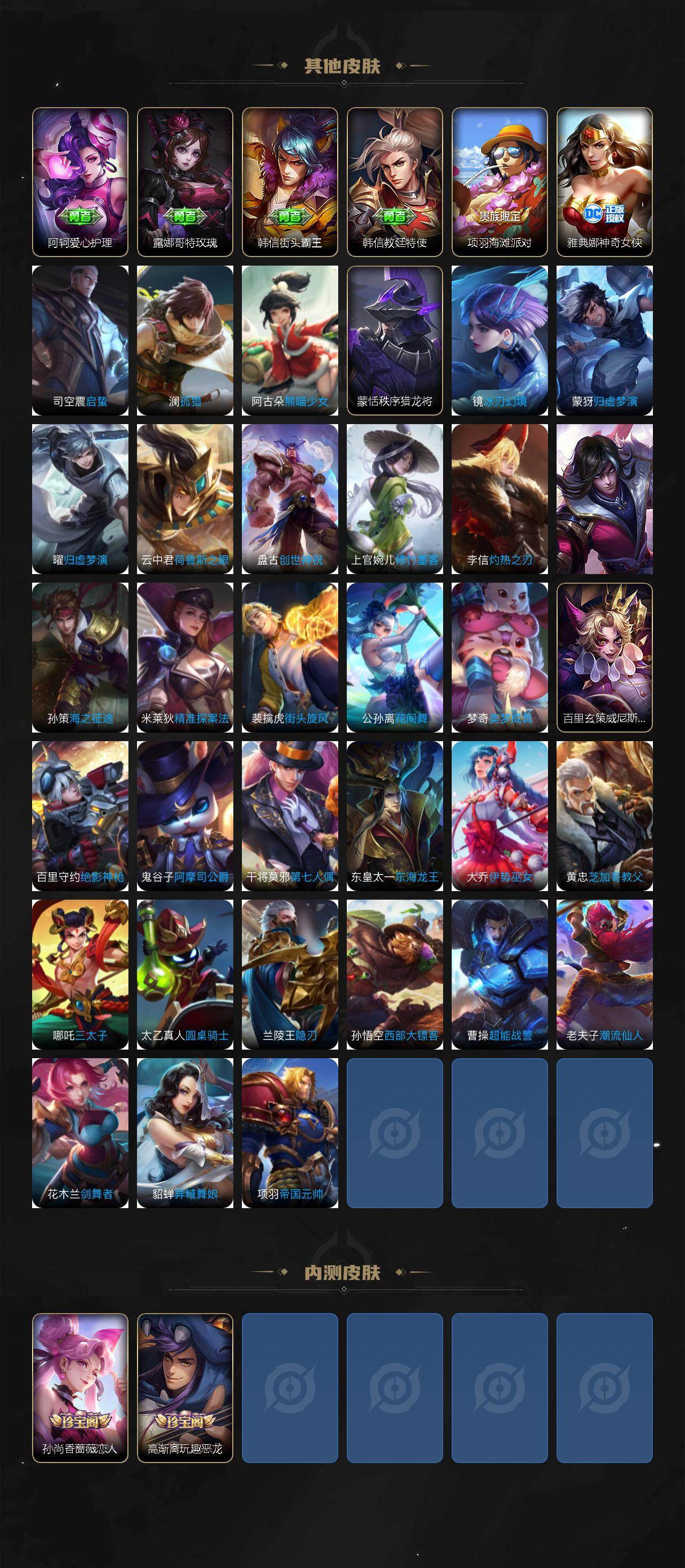 贵族8/皮肤282/典藏1/传说26/史诗80/英雄127/孙权全皮/敖隐全皮/