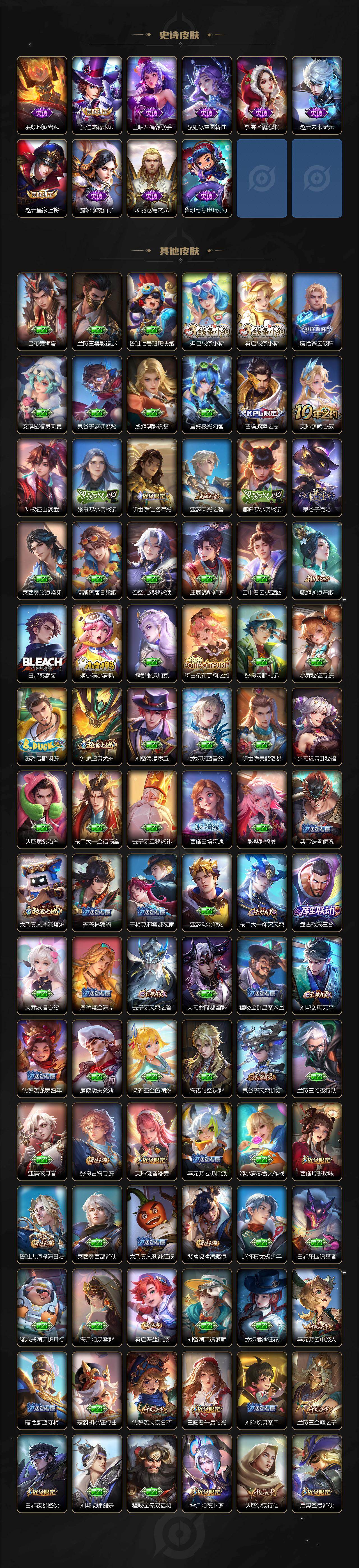 贵族9/皮肤435/典藏3/传说41/史诗129/英雄128/元歌全皮/刘邦全皮