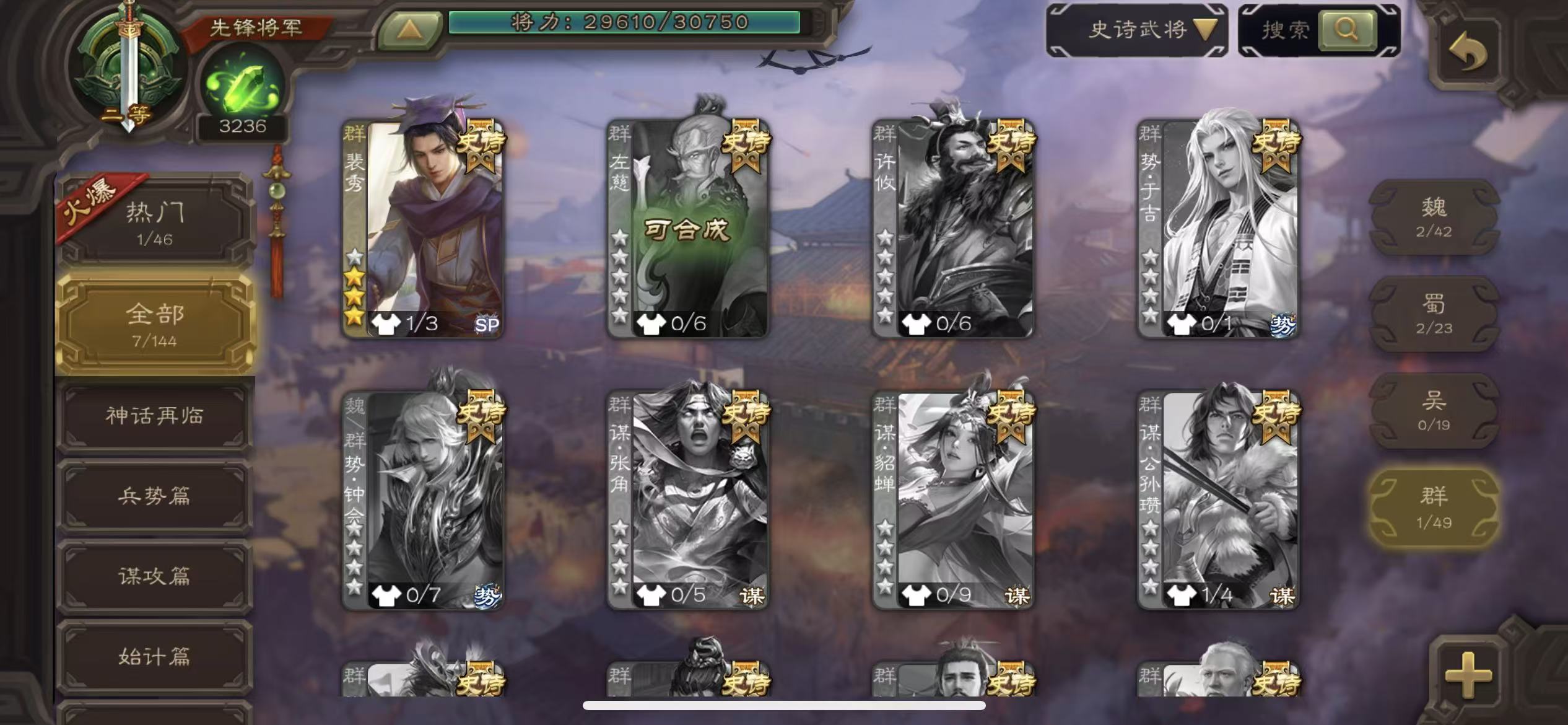 先锋谋曹丕裴秀戏子神太史慈关索三卡