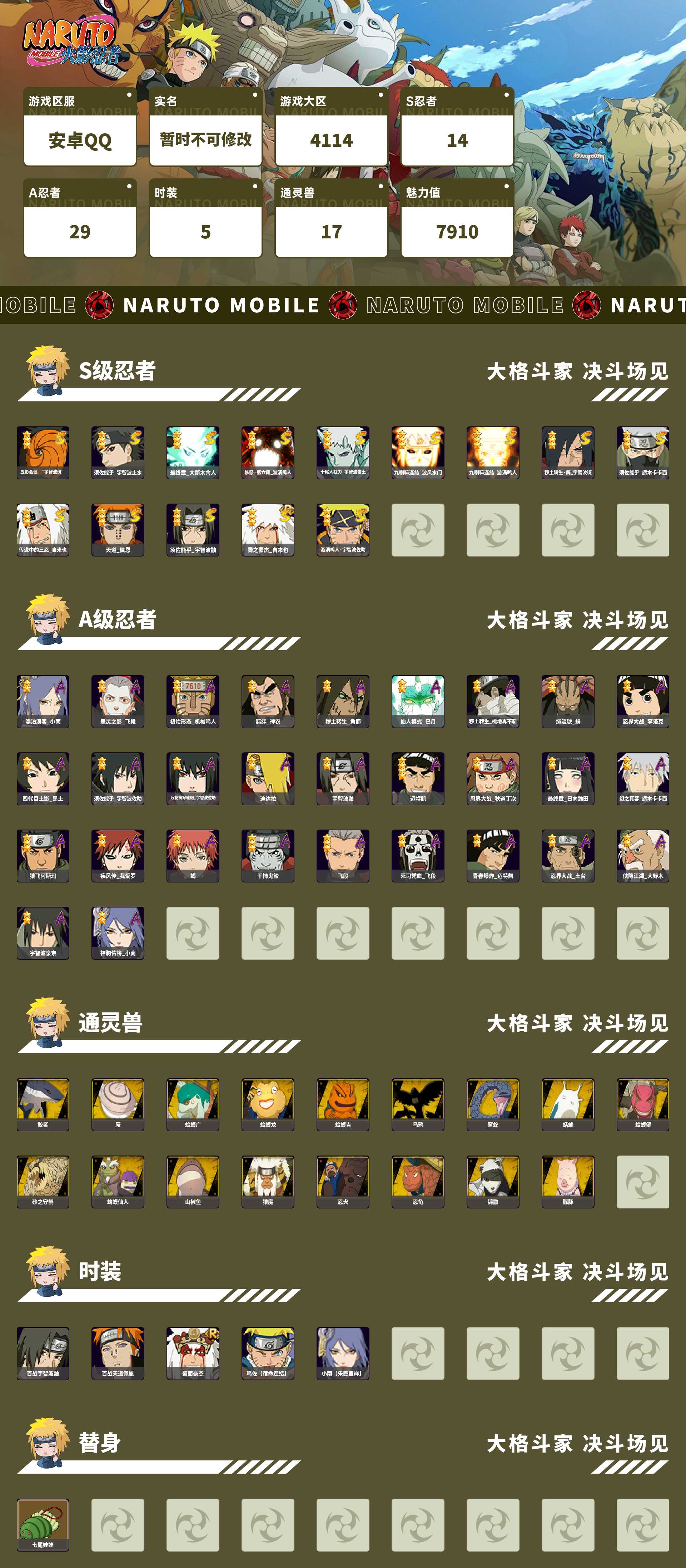 (可转苹果)699W战力 舍人 绿牛 五影斑14S+漂泊小南 恶灵飞段2个198直购29A+81片超哥