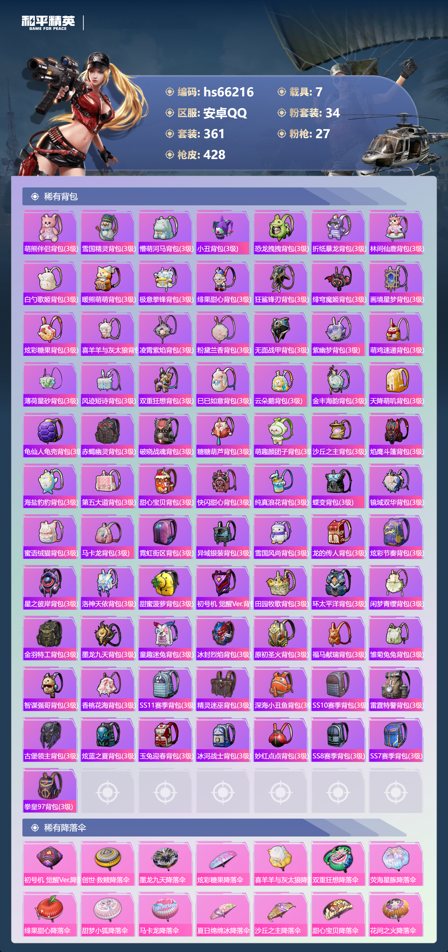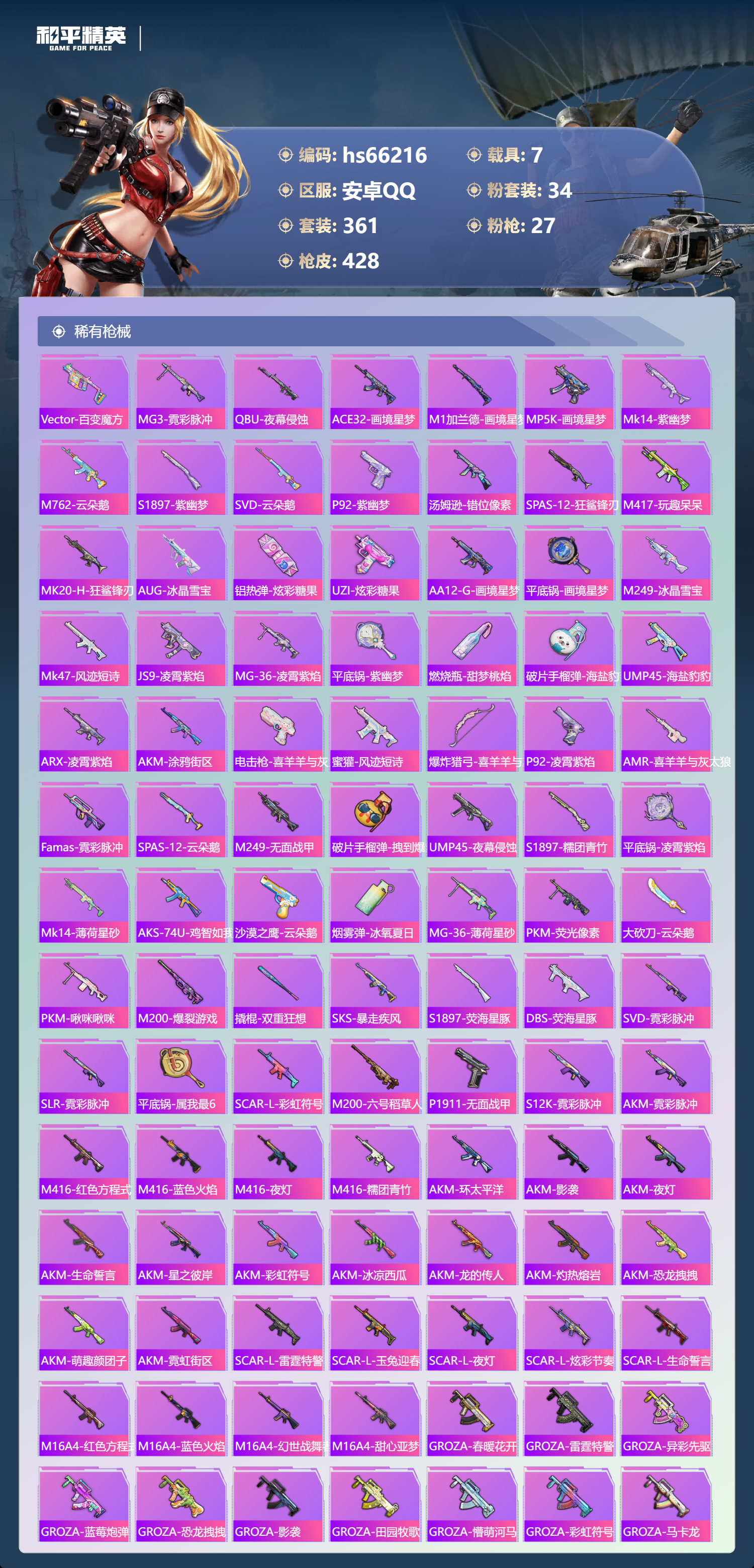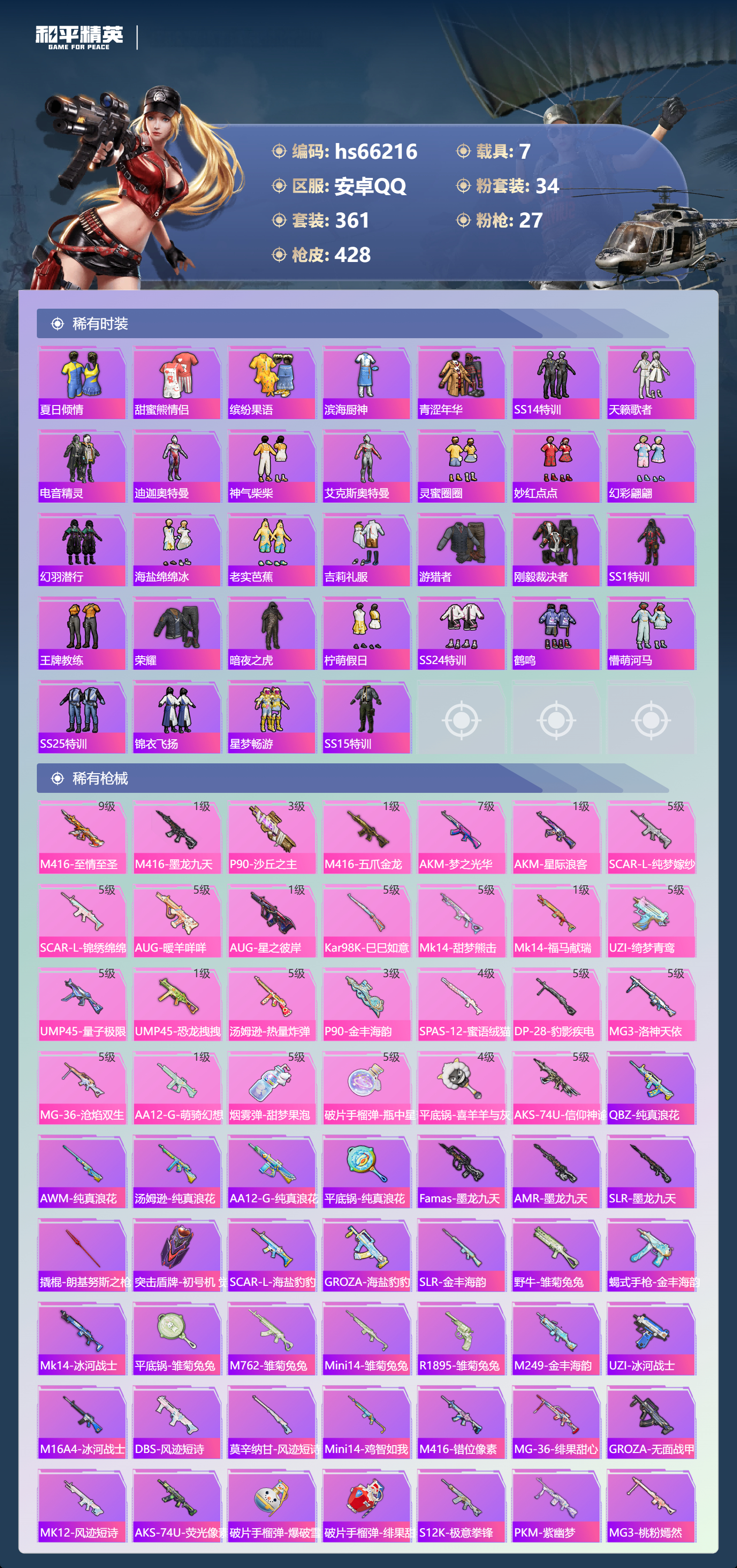 21王牌印记-有战神框-2红装-34粉装-27特效枪