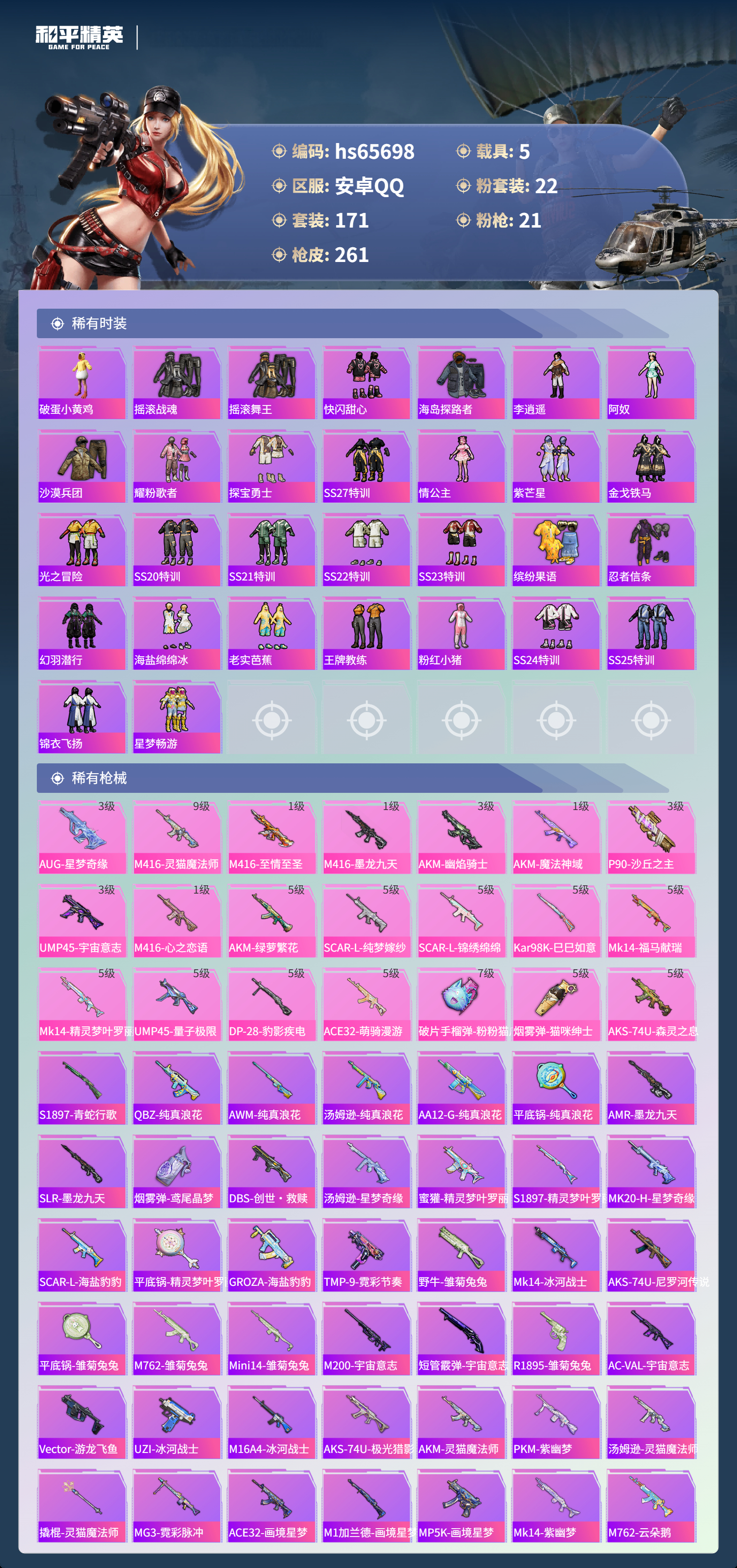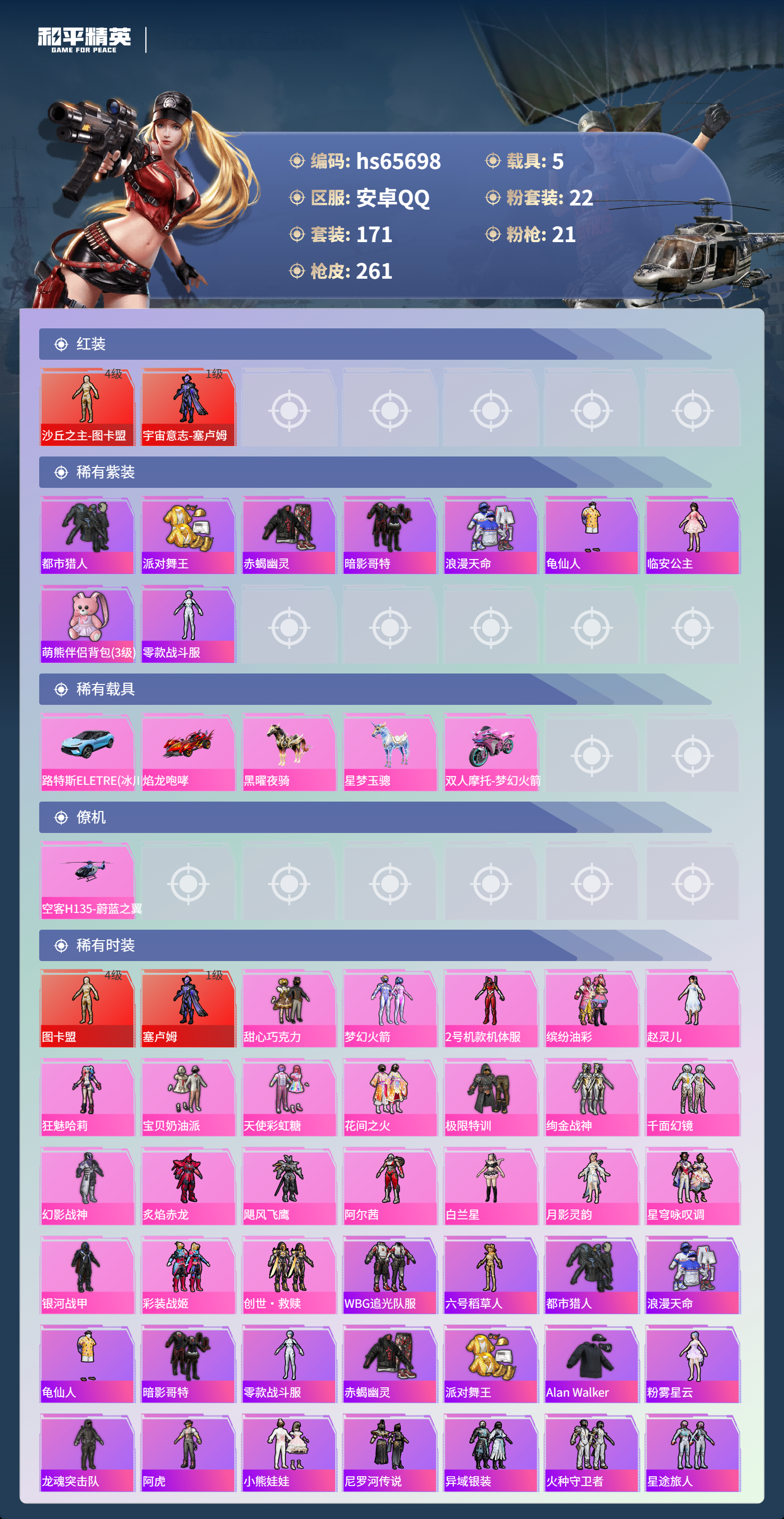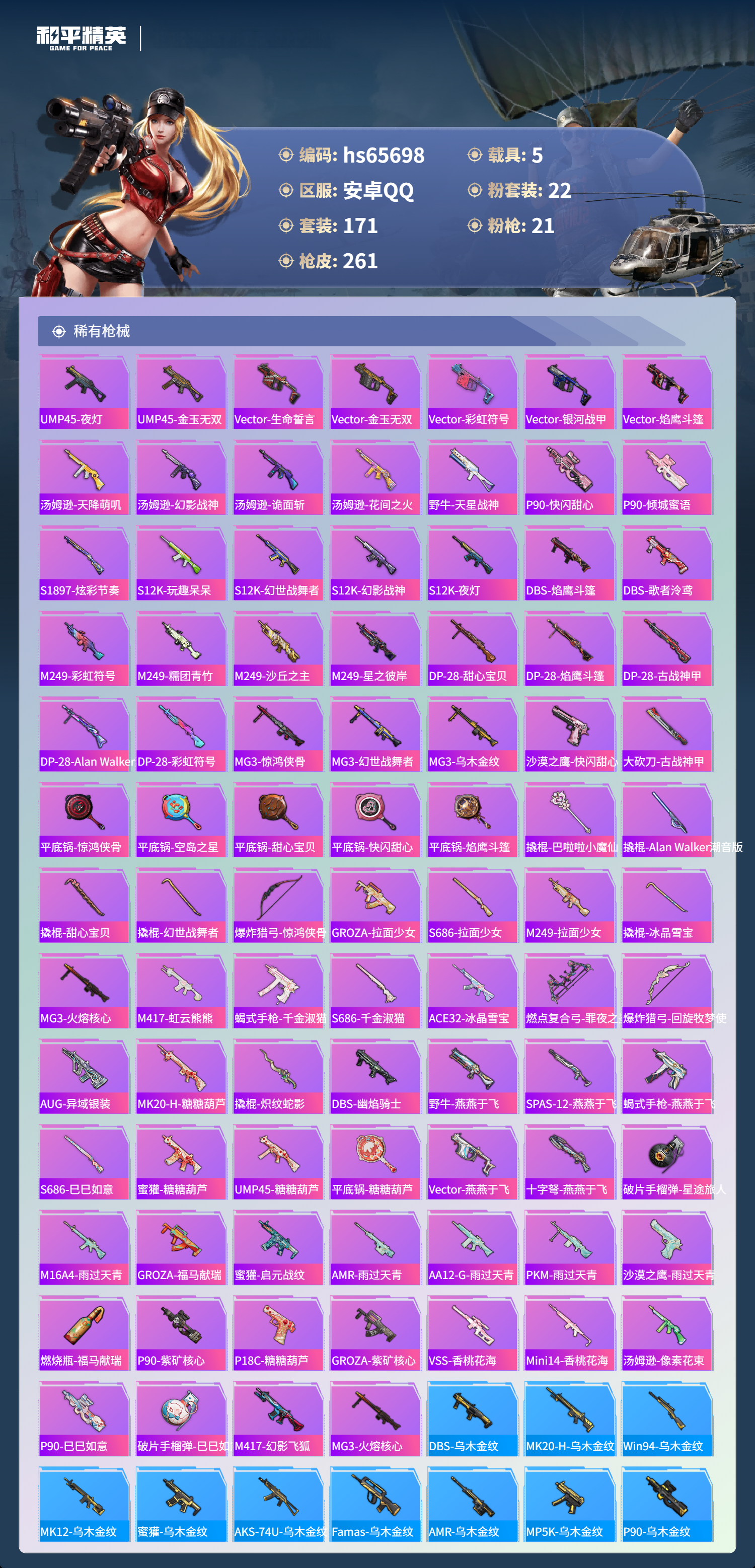 15王牌印记-2红装-22粉装-21特效枪-5载具