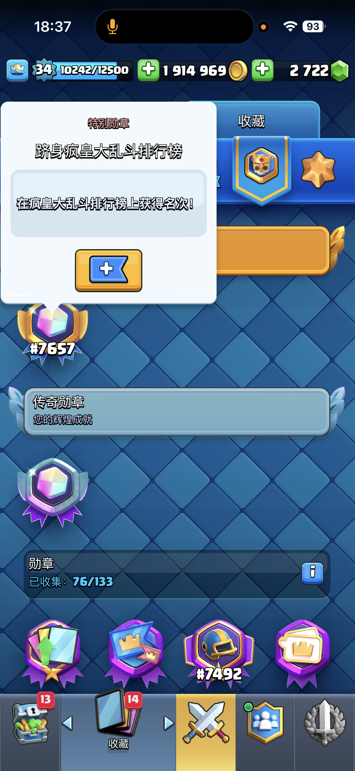 可自选精英与觉醒,或9觉醒,经典12胜牌子,达阵排名奖牌,大乱斗排名奖牌,皮卡锤卡组200万金币,2000钻石