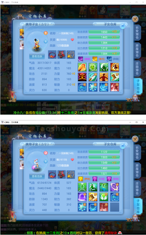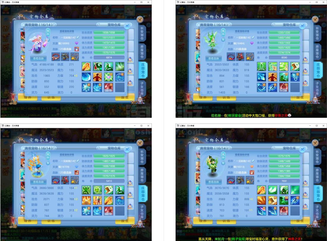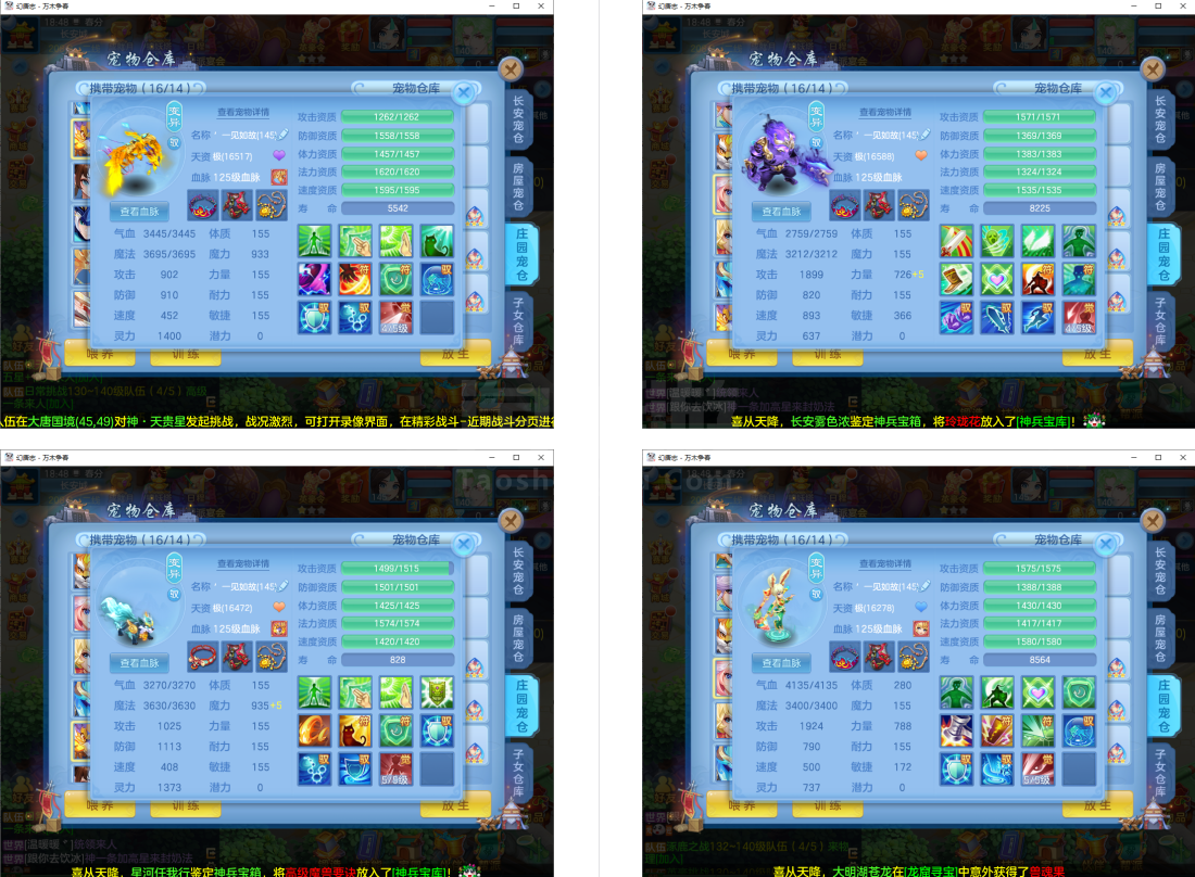 (140龙宫/男)万木争春/一年换绑/有双重--6件13段,易成长,双内丹神兽(玉龙+蛇),10个6多特殊5(5满魂兽),19红12专属血脉,高级坐骑+金拍庄园,3401成就
