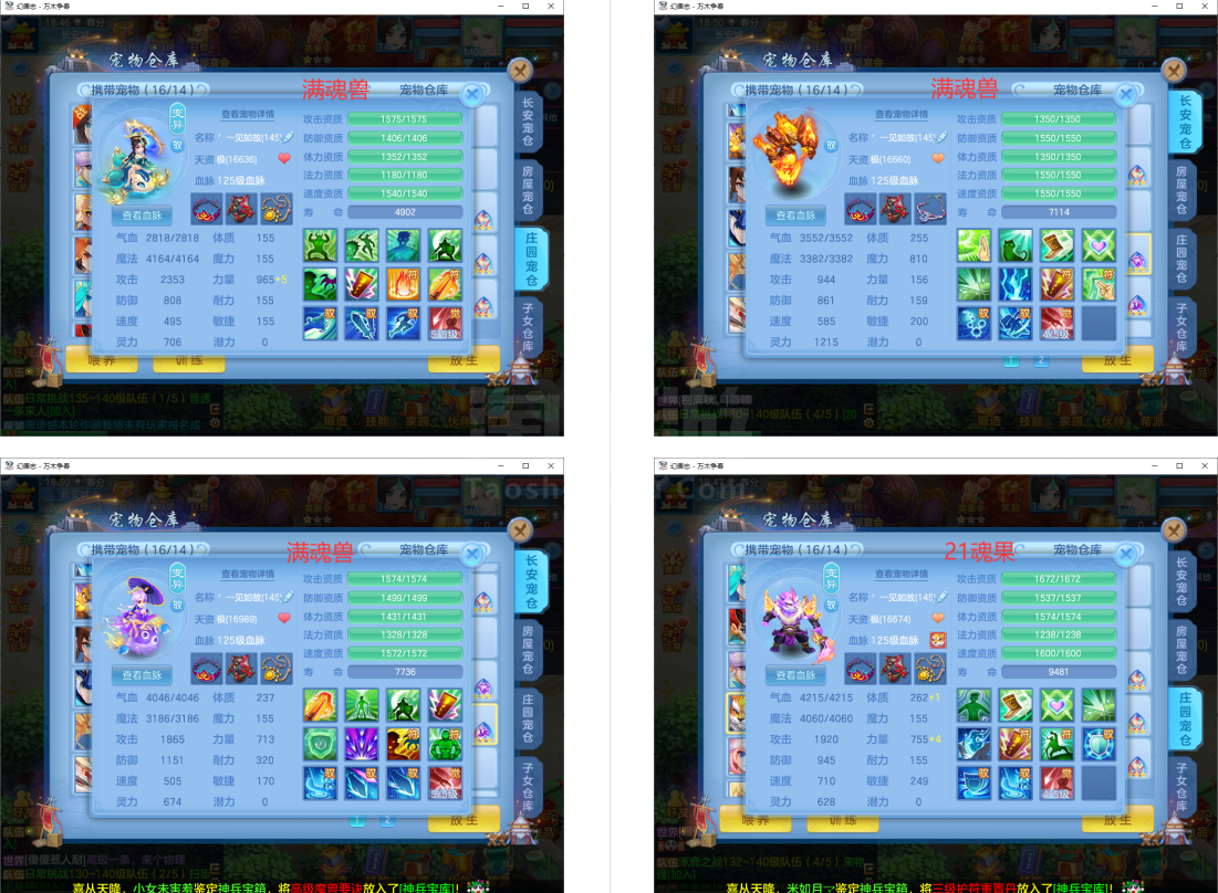 双内丹神兽(玉龙+蛇),10个6多特殊5(5满魂兽),19红12专属血脉