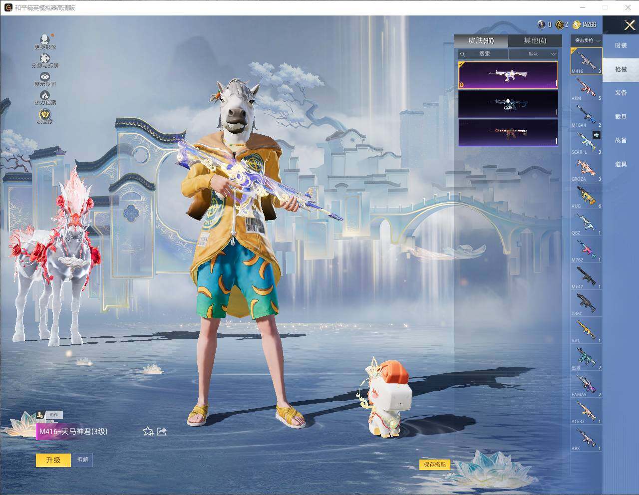 【粉色枪皮等级】:AKM-暮色玫影(三级),M416-天马神君(三级),ACE32-萌骑漫游(二级),Kar98K-巳巳如意(五级),Mk14-福马献瑞(四级),DP-28-豹