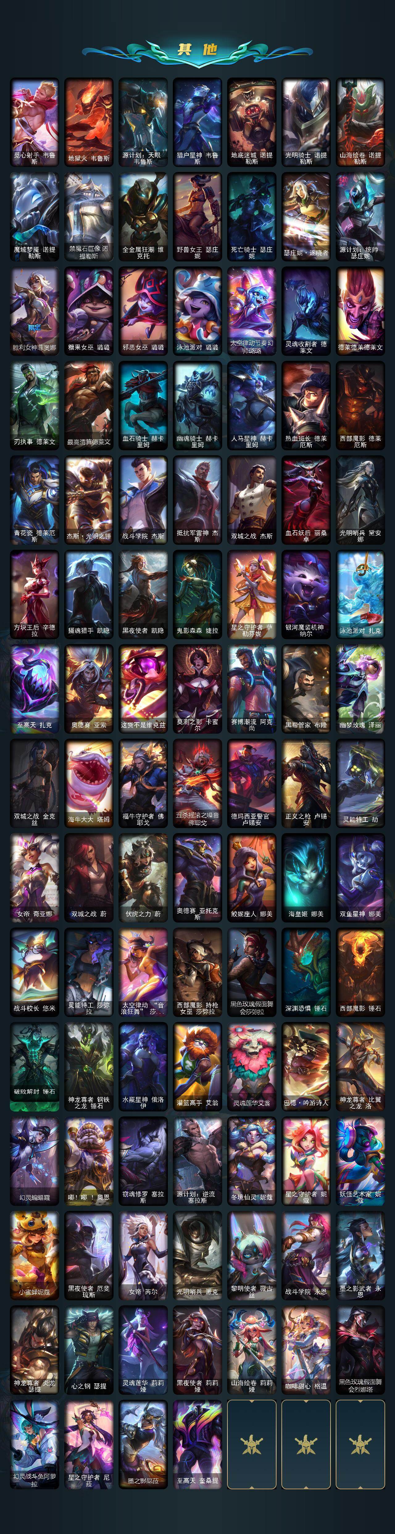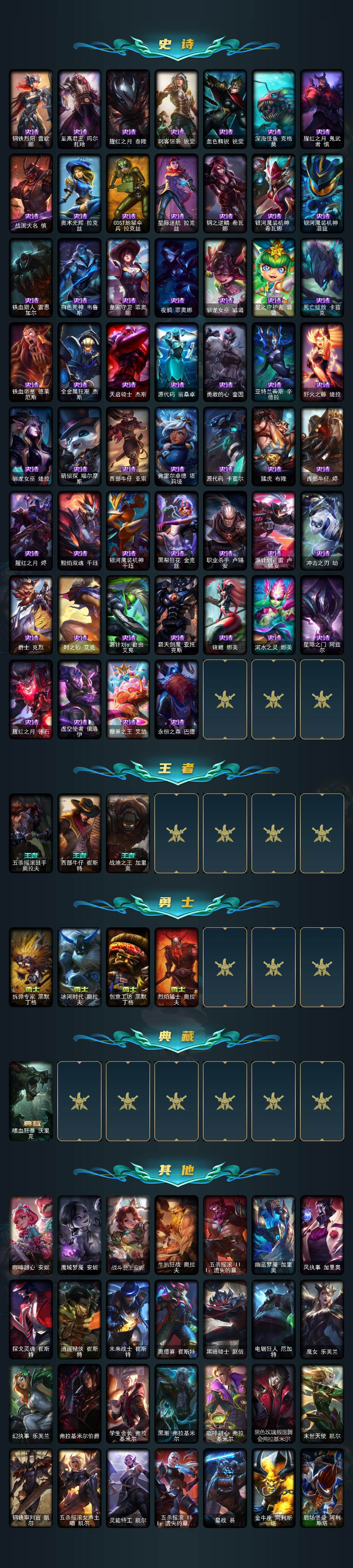 未定级段位-172英雄-670皮肤-400炫彩-7终极-52神话-61限定-73传说-130史诗