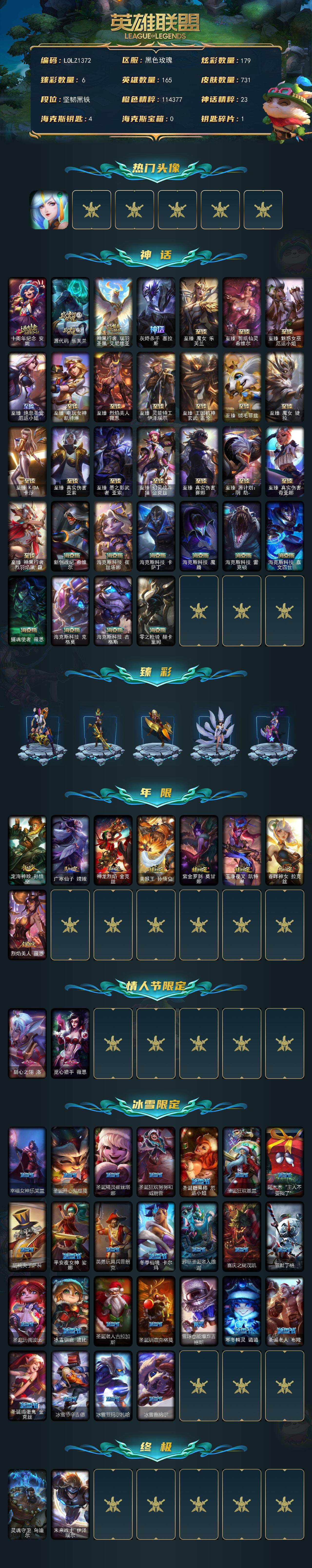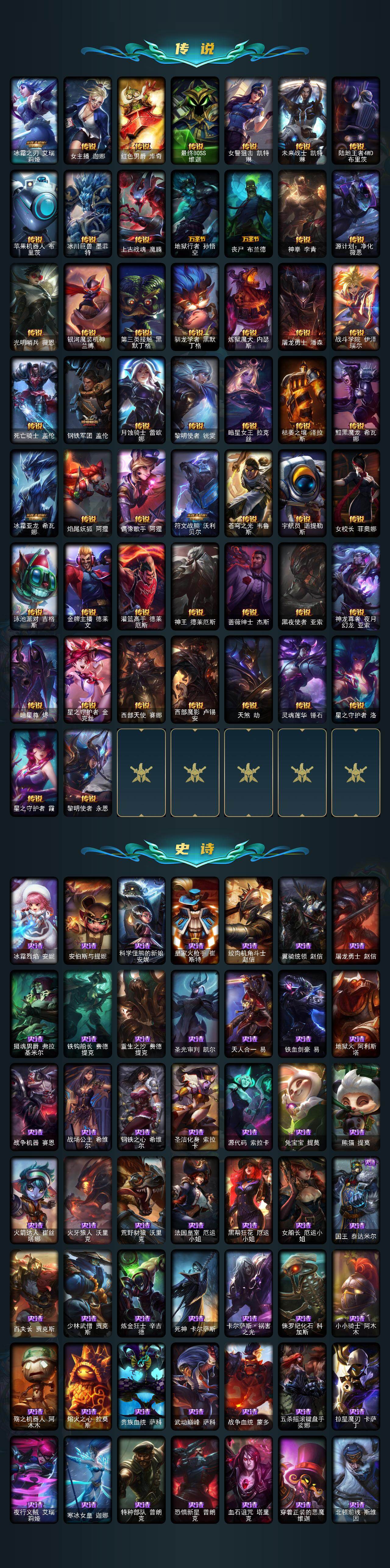 165英雄/731皮肤/2终极/32神话/112限定/6臻彩/