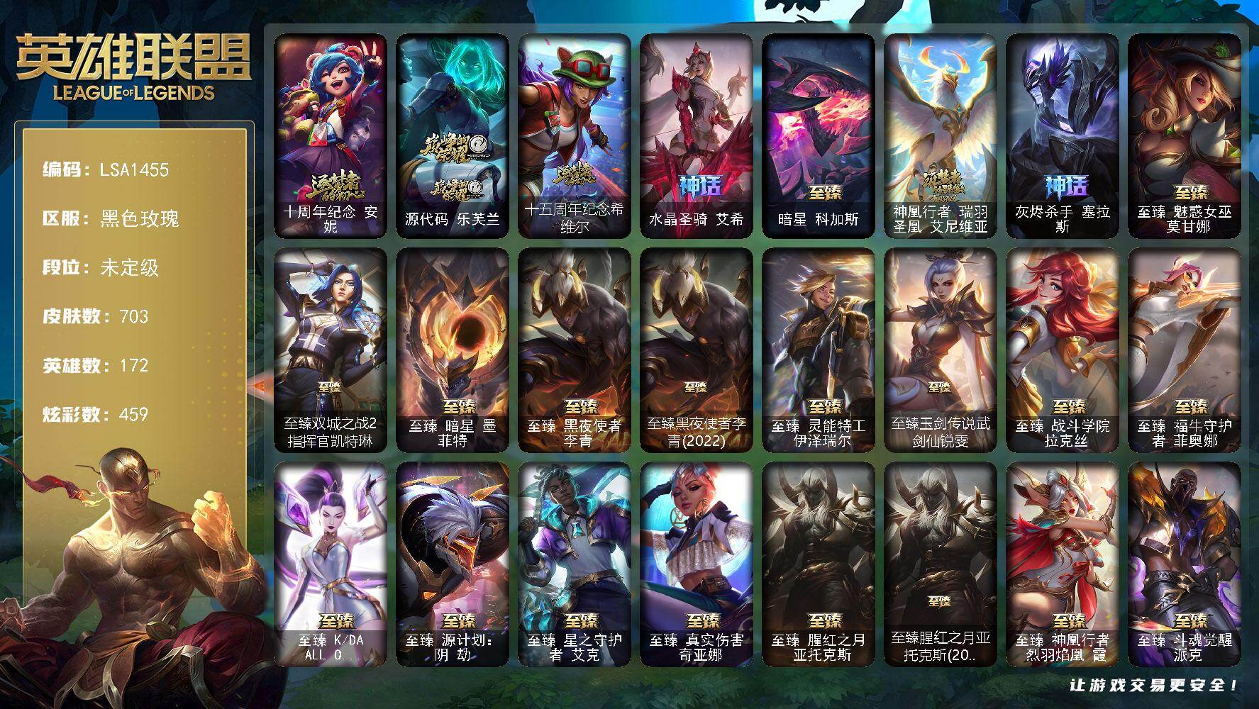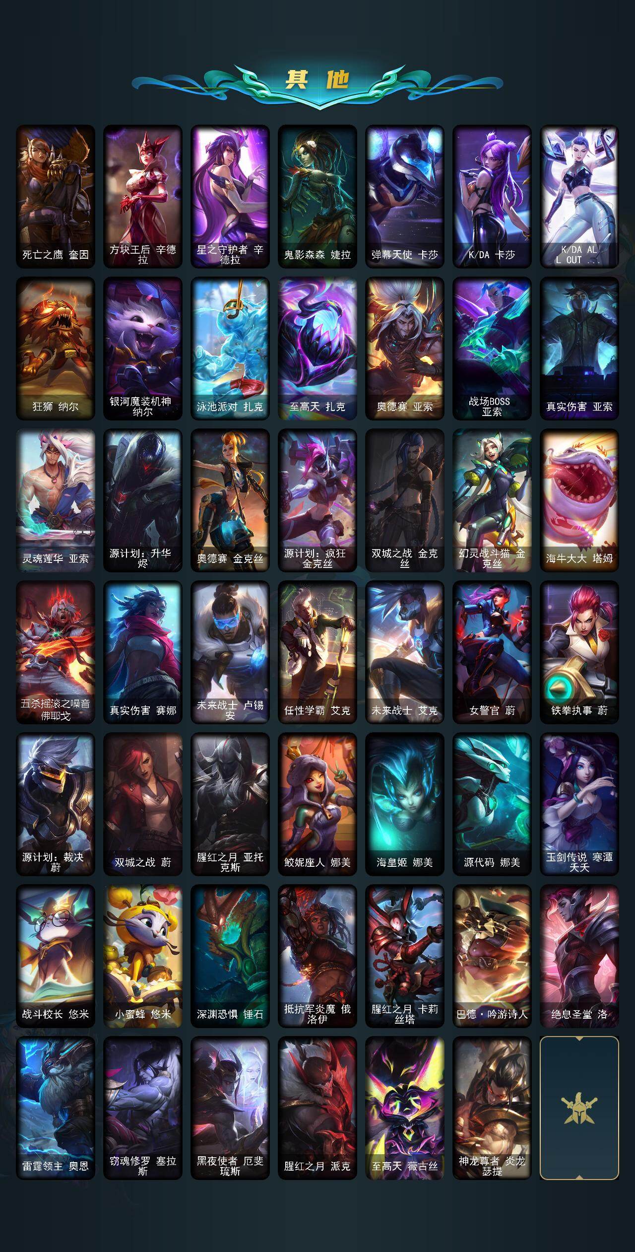 【LOLZ1372】165英雄/731皮肤/2终极/32神话/112限定/6臻彩/179炫彩/79传说/178史诗/未定级/春晖神女头像/十周年纪念安妮/源代码乐芙兰/神凰行者瑞羽圣凰艾尼维亚/灰烬杀手塞拉斯/至臻魔女乐芙兰/至臻剪纸仙灵希维尔/至臻魅惑女巫厄运小姐/至臻绝息圣堂厄运小姐/至臻电玩女神凯特琳/至臻烈焰美人薇恩/至臻灵能特工伊泽瑞尔/至臻王国机神玄武盖伦/至臻绒毛菲兹/至臻魔女婕拉/至臻KDA卡莎/至臻真实伤害亚索/至臻墨之影武者亚索/至臻幻灵战斗猫金克丝/至臻真实伤害赛娜/至臻源