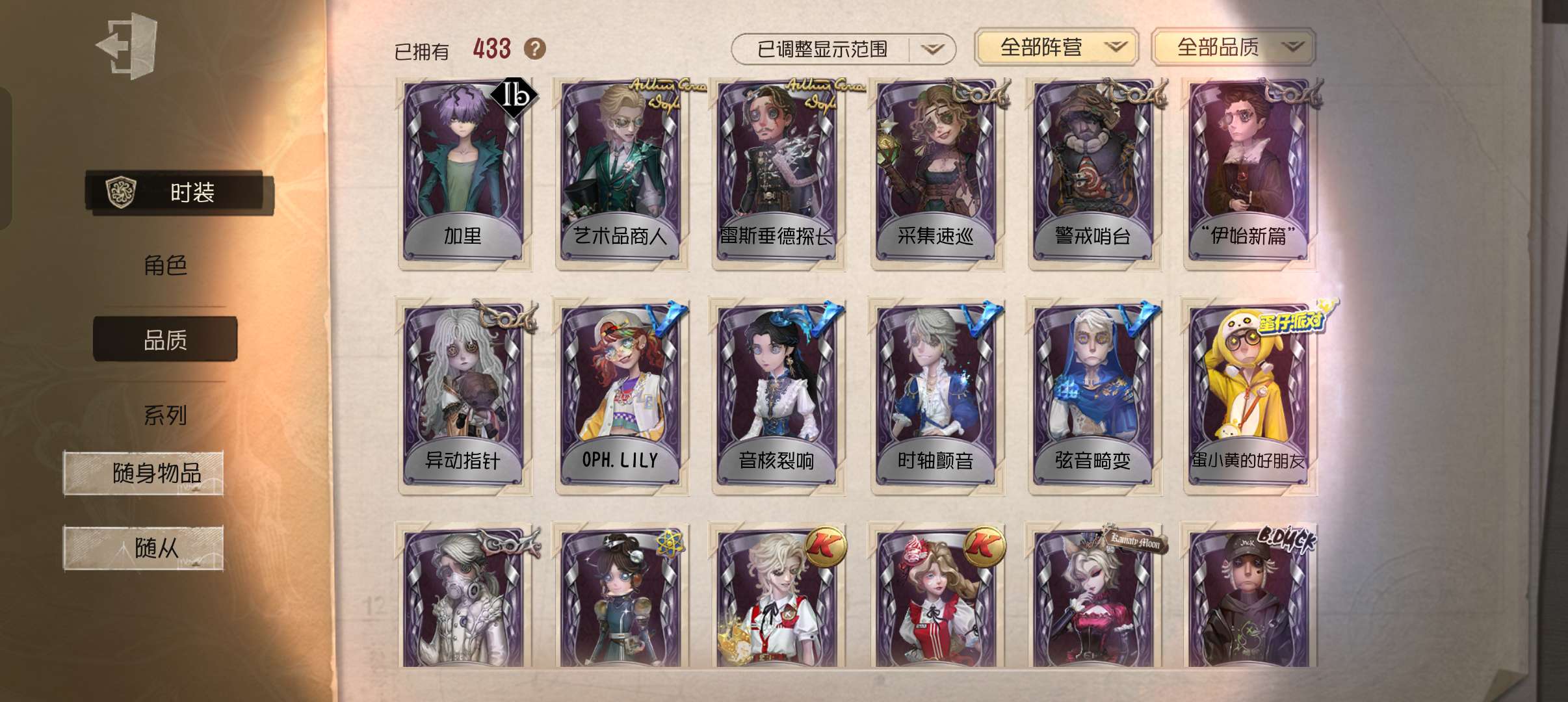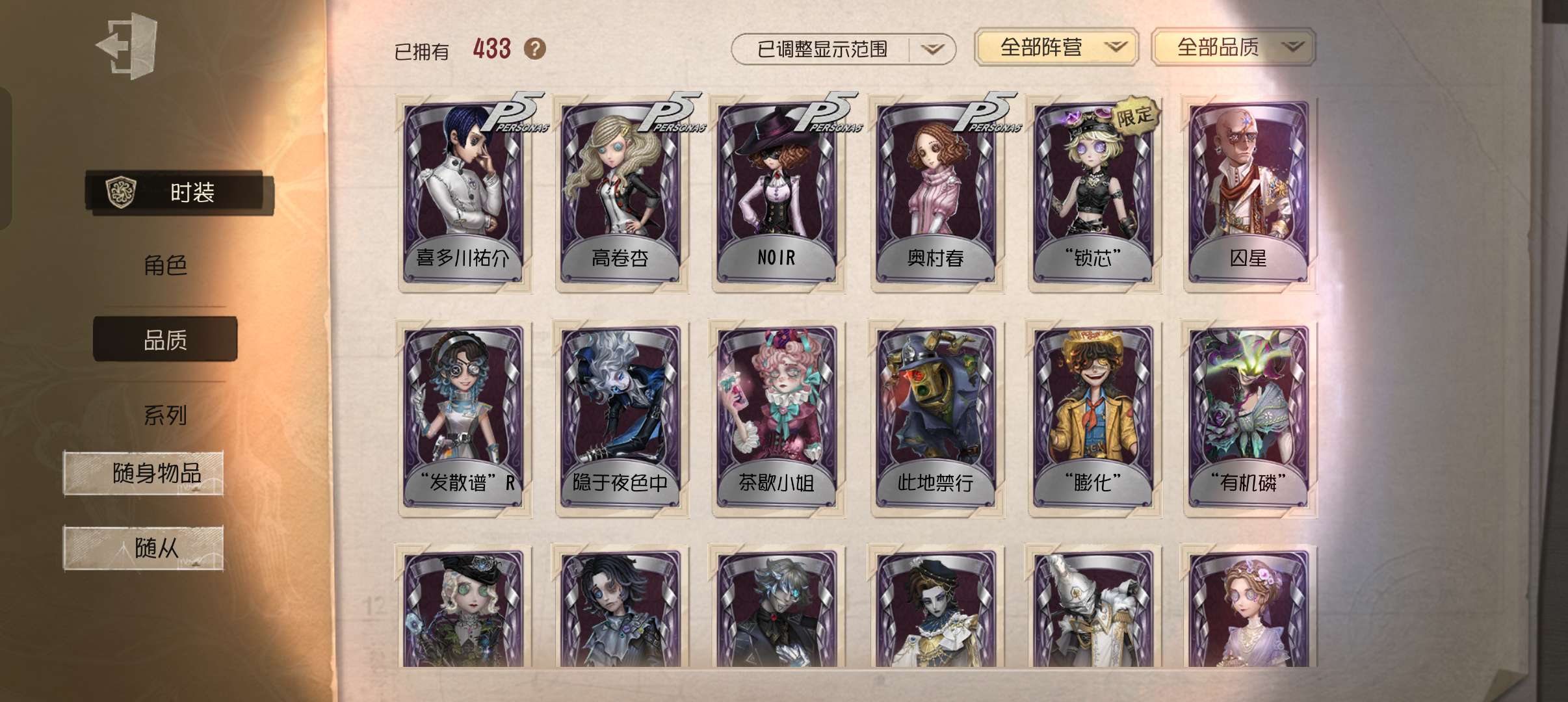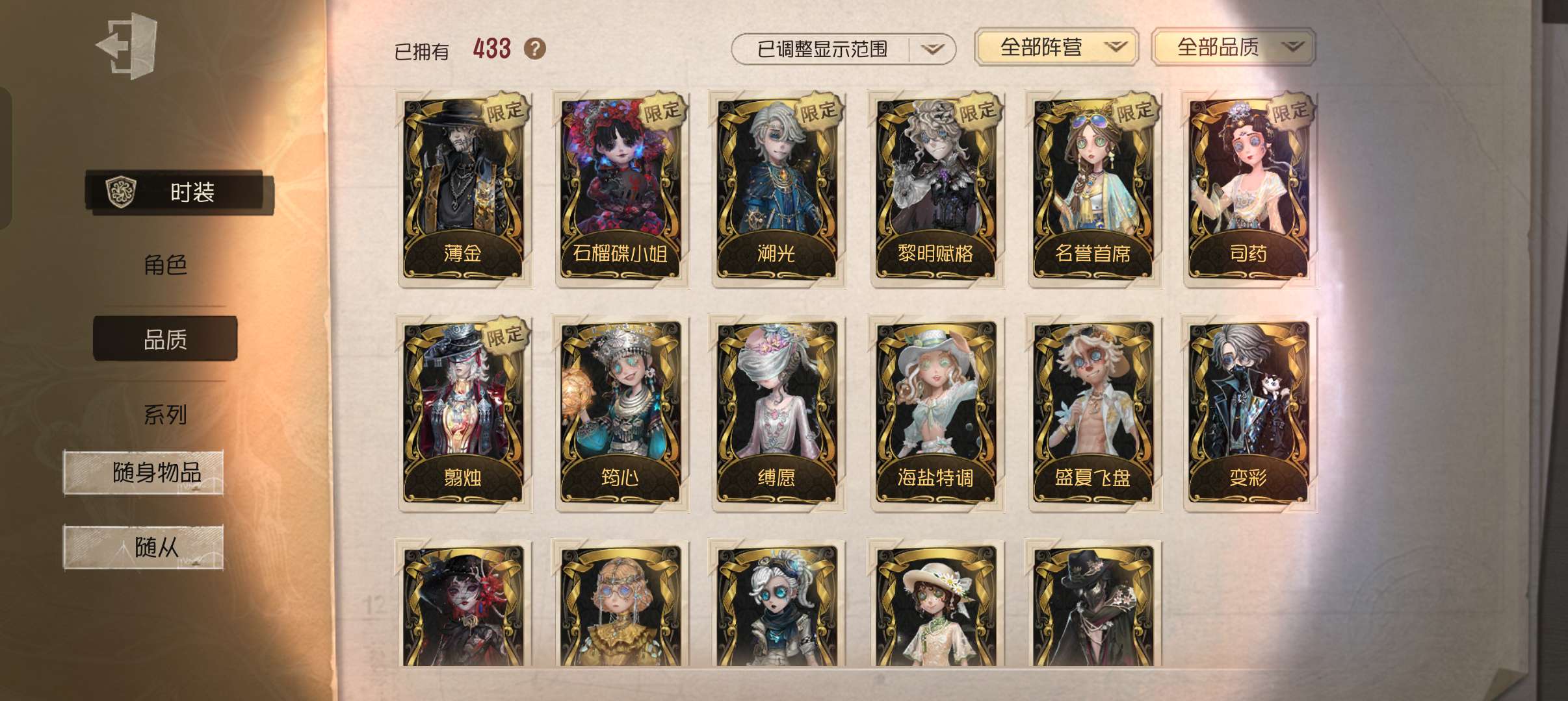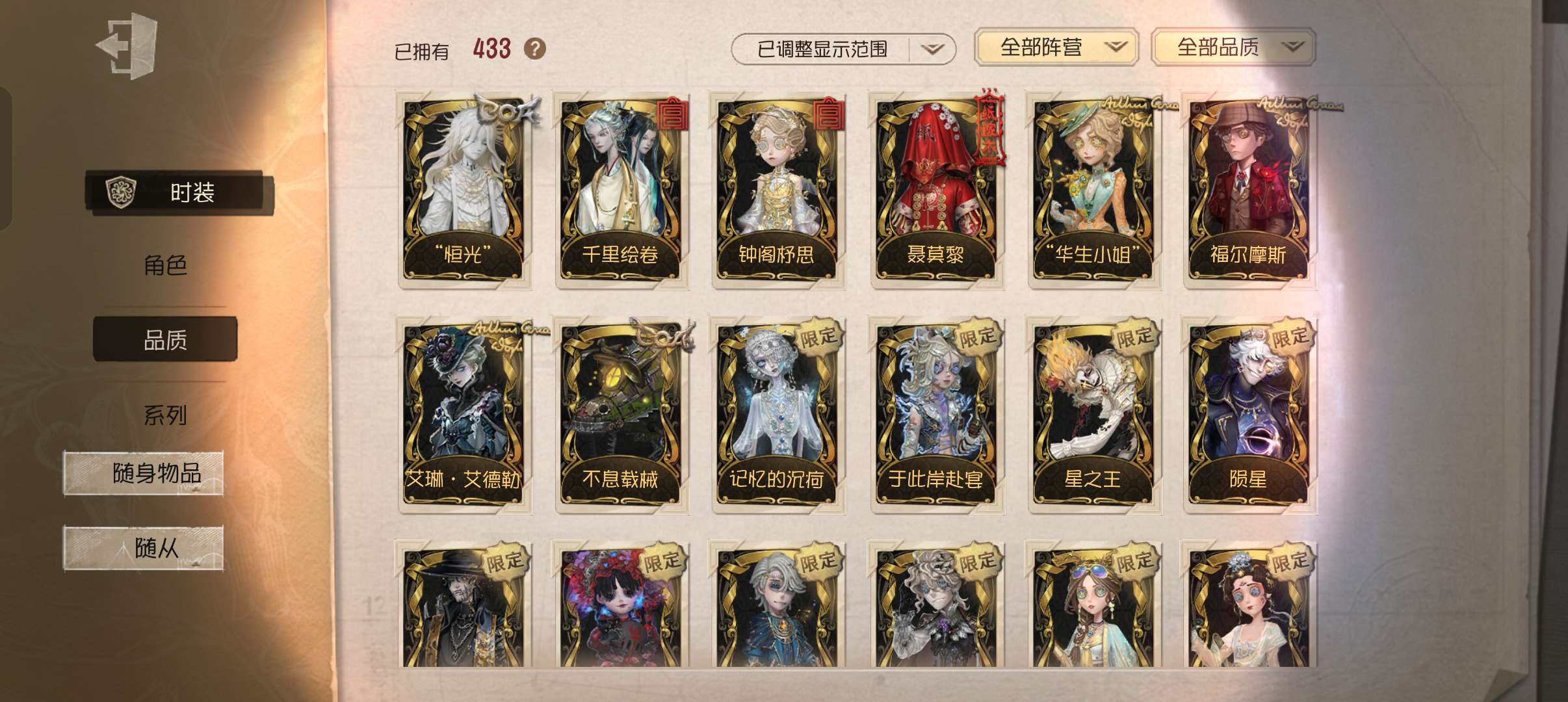 纯氪号17精华金恒光囚徒二限愚人金二限等多限定,虚妄积分1030,回声还有280,有221b归宿。归