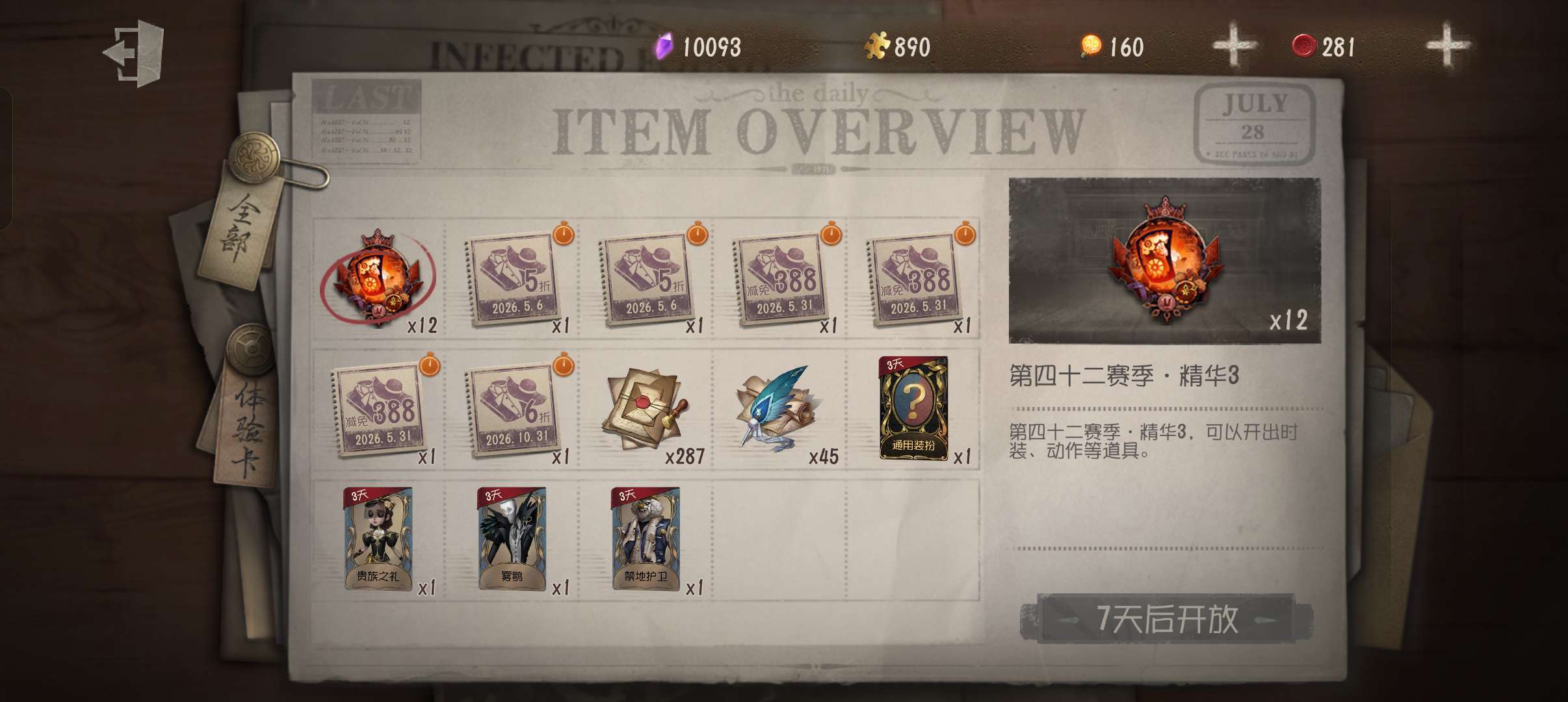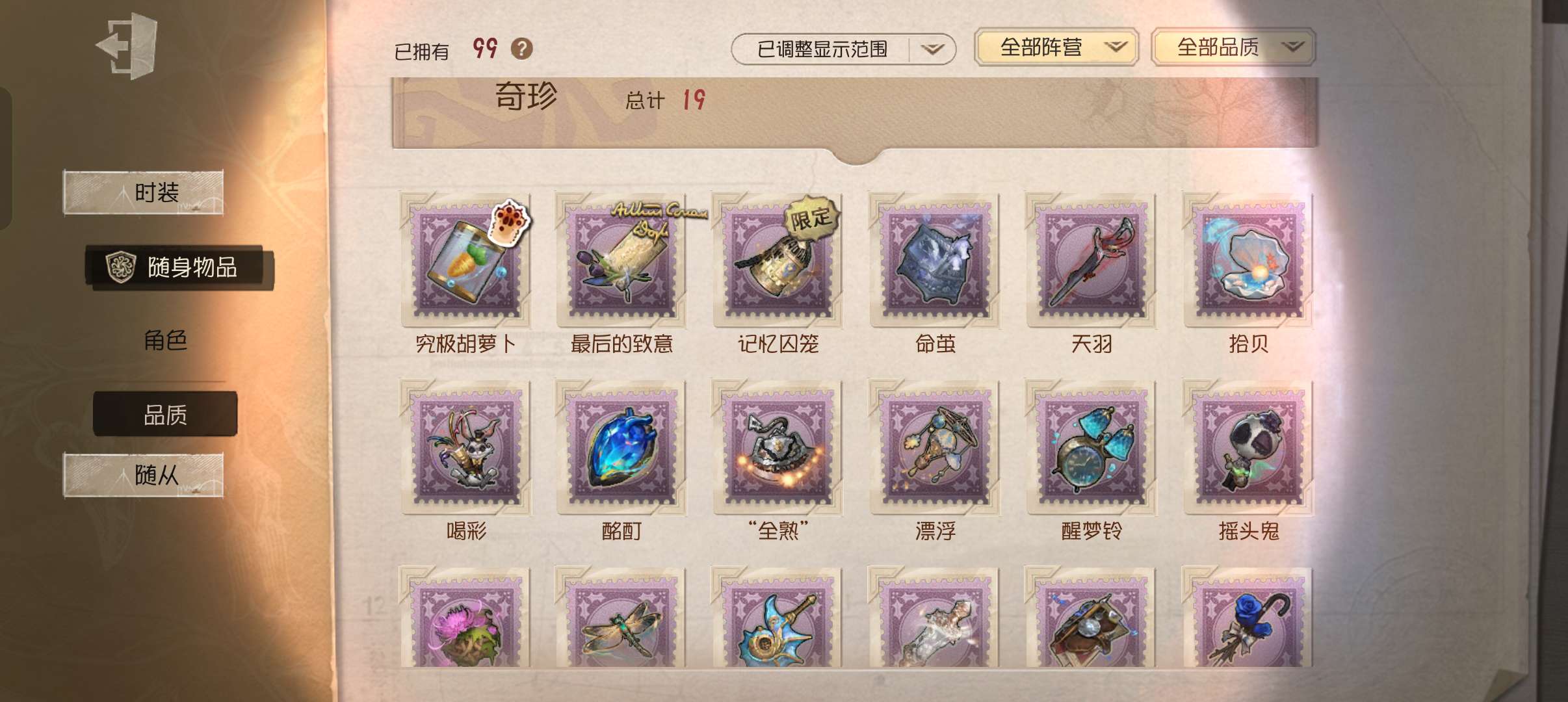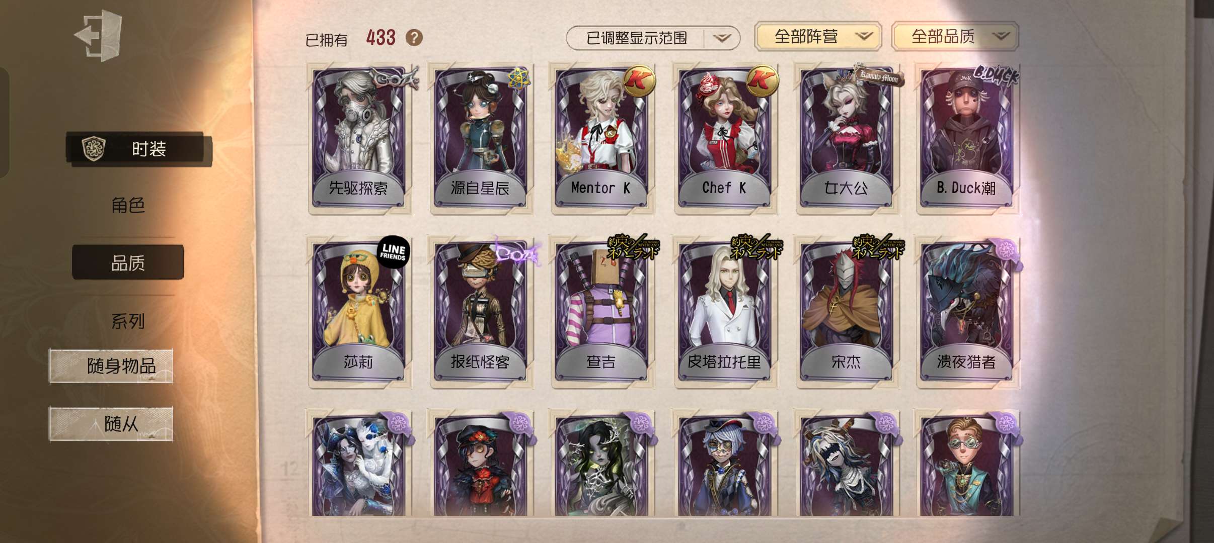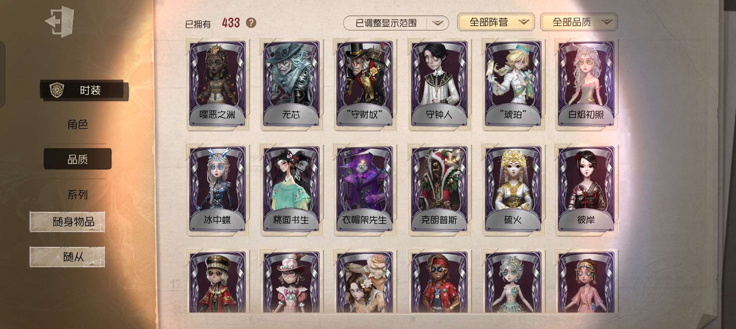 纯氪号17精华金恒光囚徒二限愚人金二限等多限定,虚妄积分1030,回声还有280,有221b归宿。归